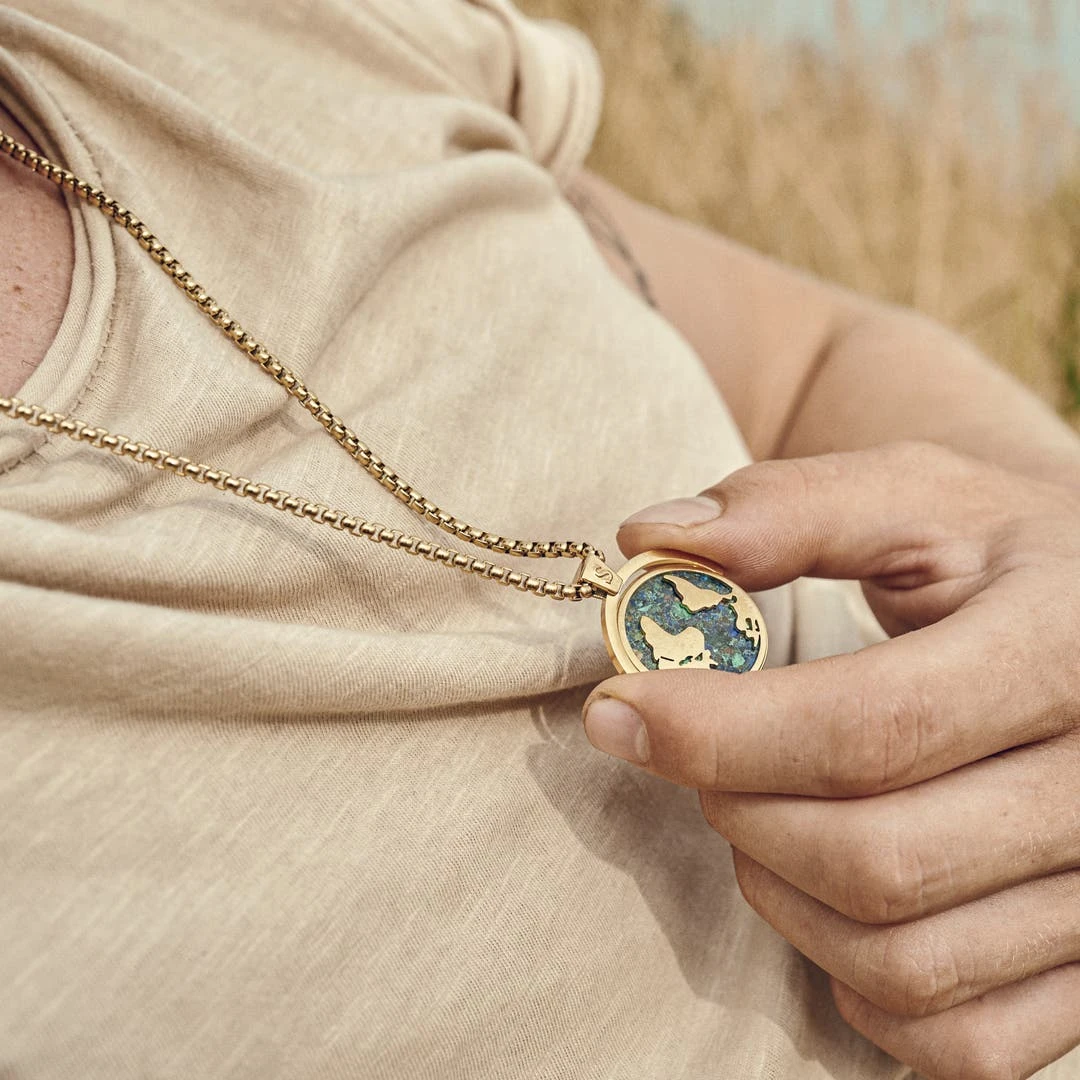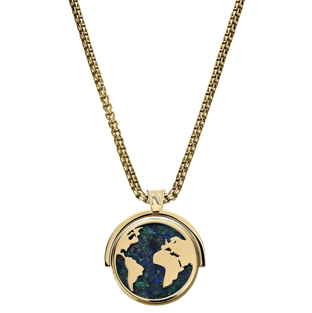 Arkai Atlas | Collier En Acier Inoxydable Doré à Pendentif Rotatif Mappemonde En Azurite Et Malachite