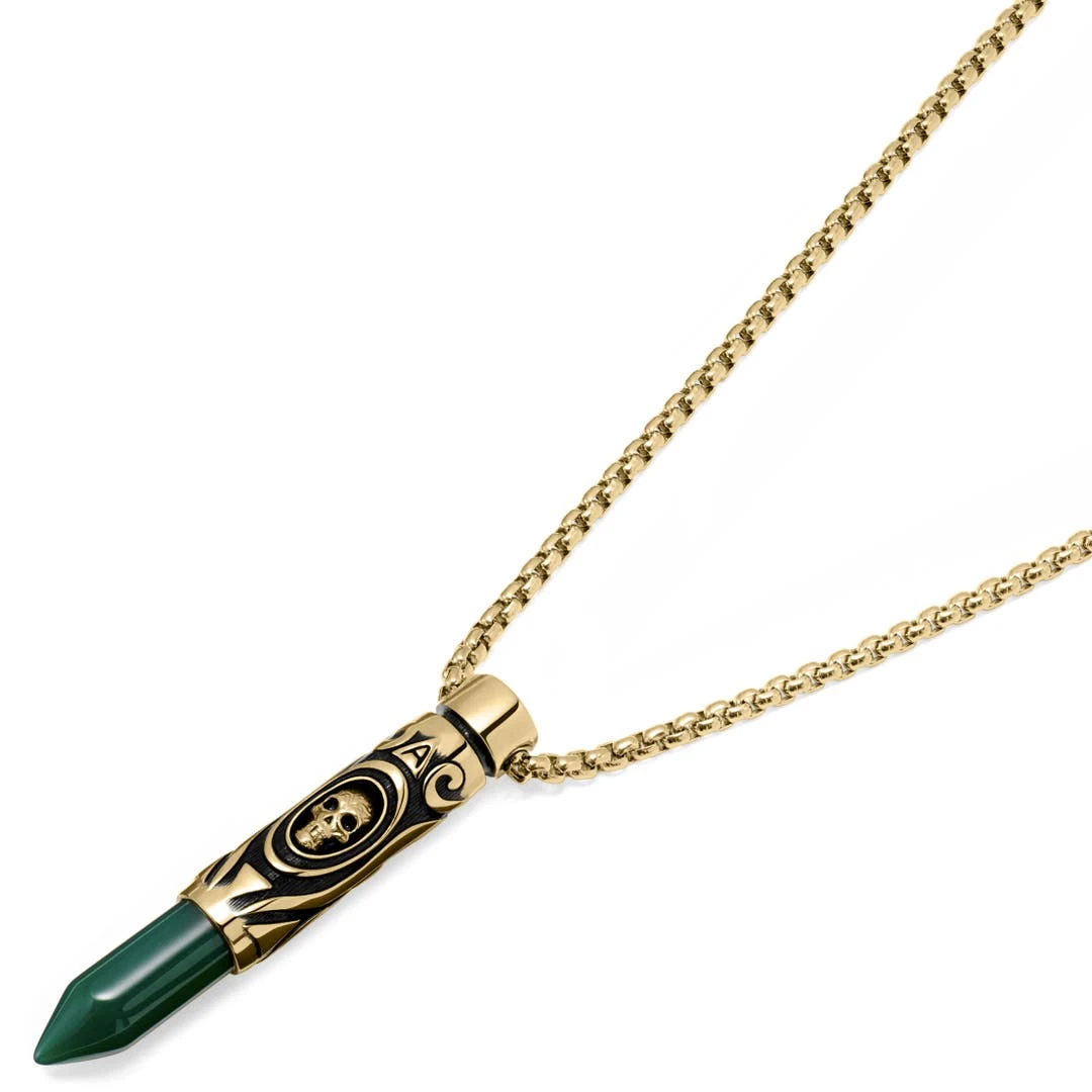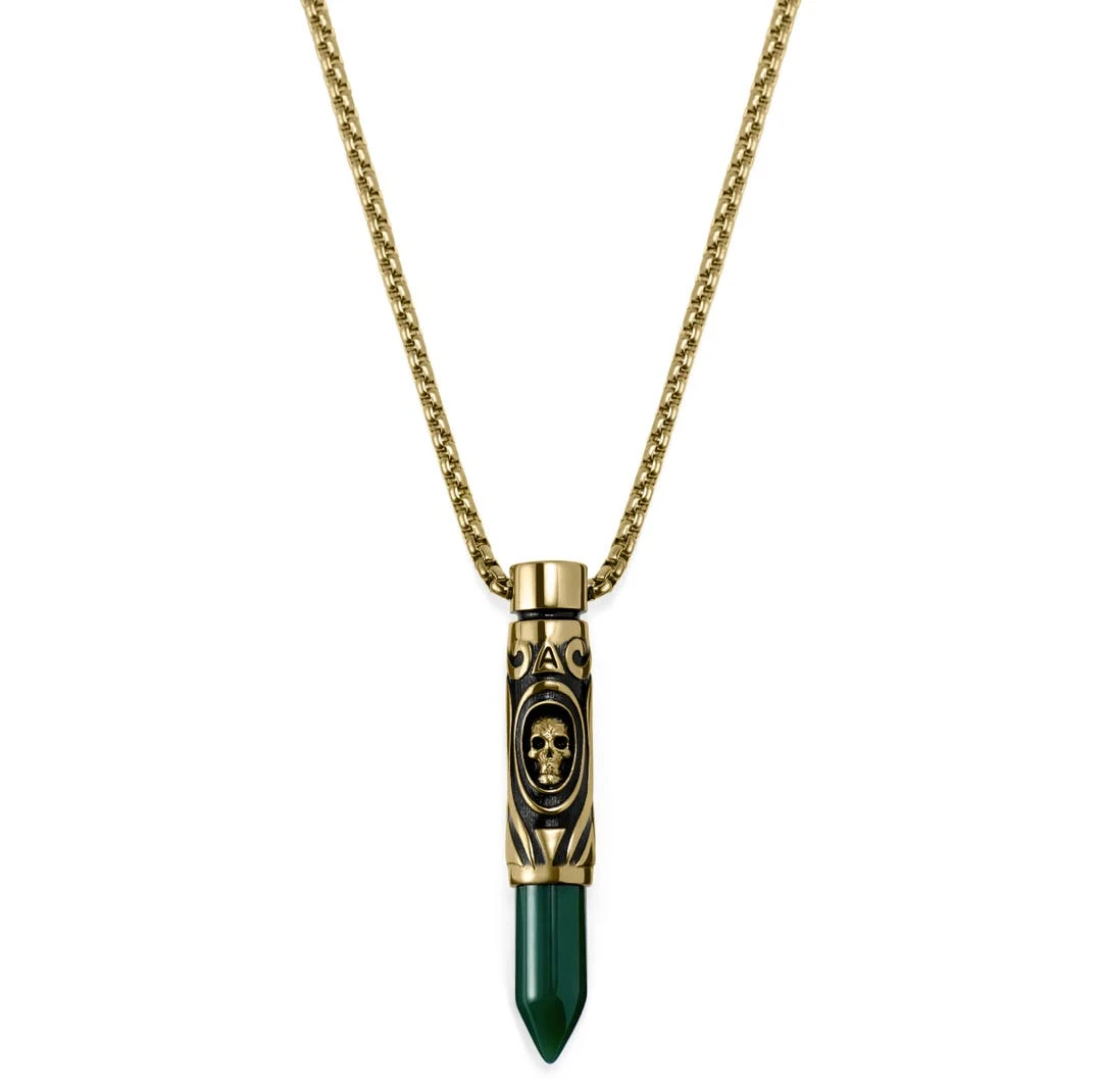 Arkai Collier Rico à Pendentif En Forme De Cartouche Dorée Et Onyx Vert