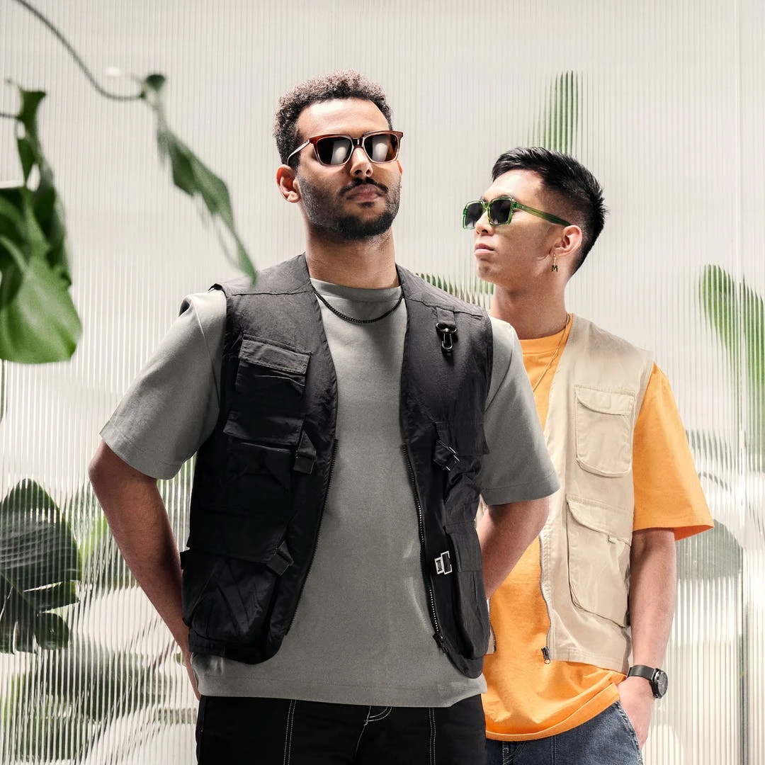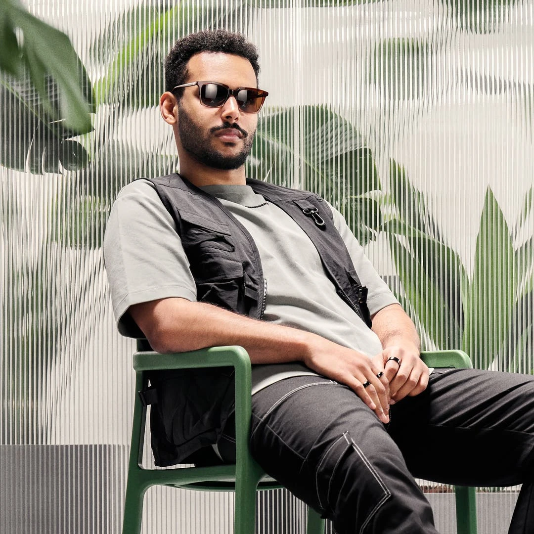 Une paire de lunettes de soleil rétro pour hommes avec des montures épaisses qui rappellent les montures en corne. Des lunettes légères et confortables grâce à leur construction en acétate de haute qualité.
