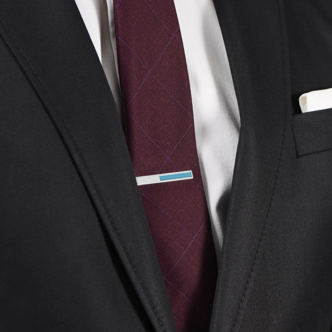 Combinez et agencez cette épingle à cravate argentée polie avec les autres accessoires de la collection Geo Remix. Sa touche de bleu clair a été choisie spécifiquement pour être assortie aux boutons de manchette et aux épingles de revers et créer un look réfléchi sans être imposant.