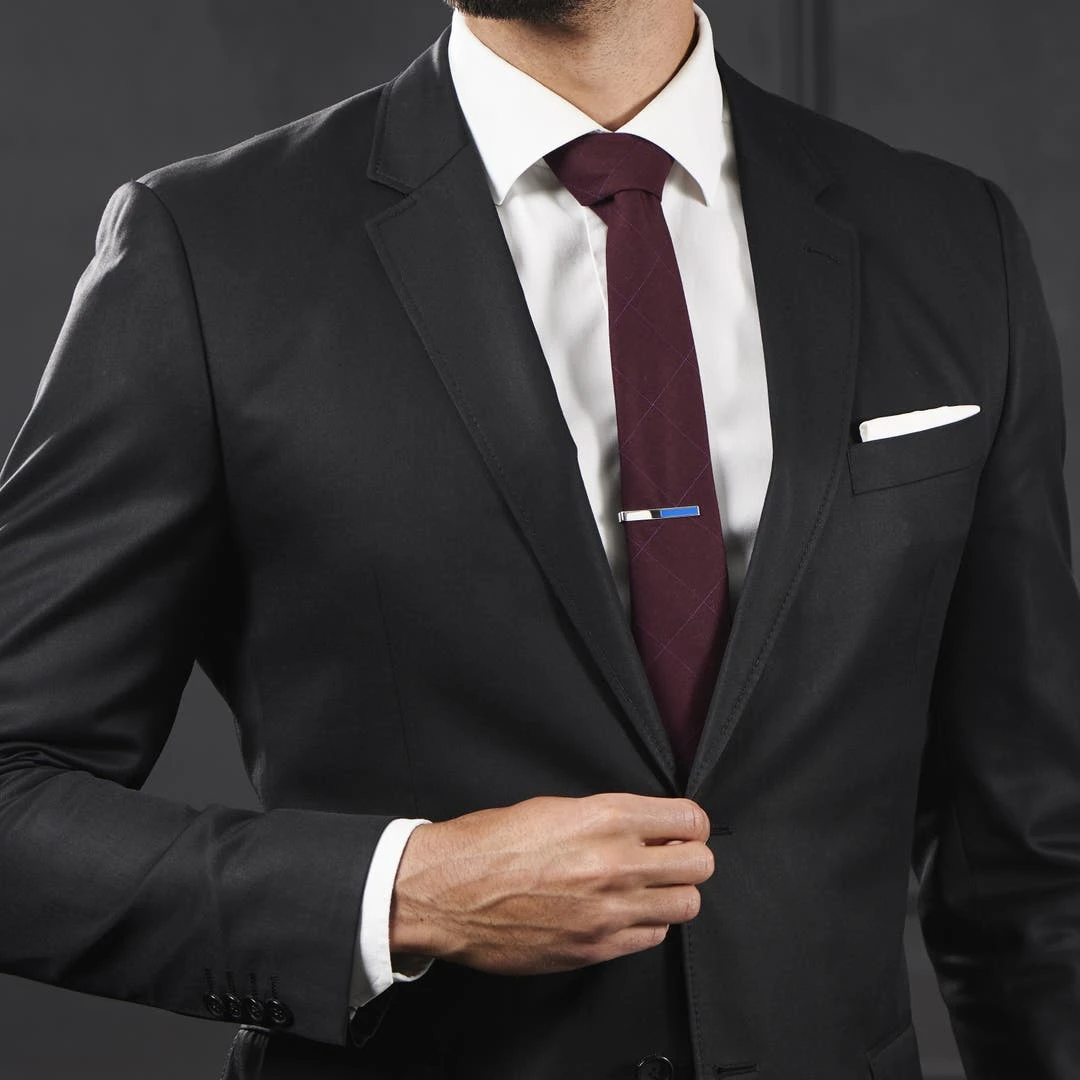 Cette pince à cravate bleu foncé et argentée est conçue pour empêcher votre cravate de tomber dans votre soupe… et à le faire en toute élégance.