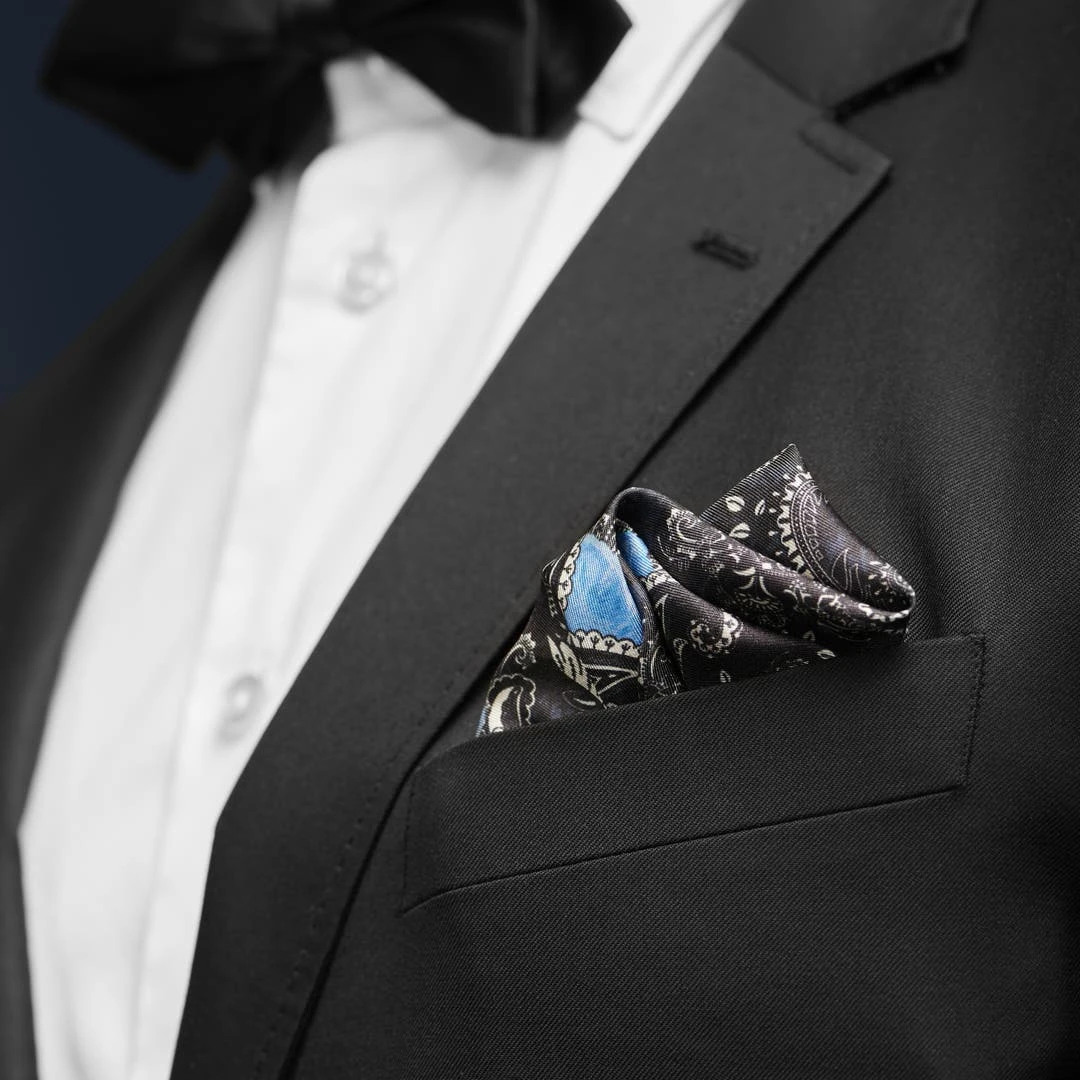 Une garde-robe digne de ce nom doit contenir des accessoires qui vous permettent d’exprimer votre personnalité. C’est ce que vous pourrez faire avec à cette pochette de costume Boho grâce à ses bords roulés à la main et son imprimé cachemire classique décoré de roses d’un bleue éclatant.