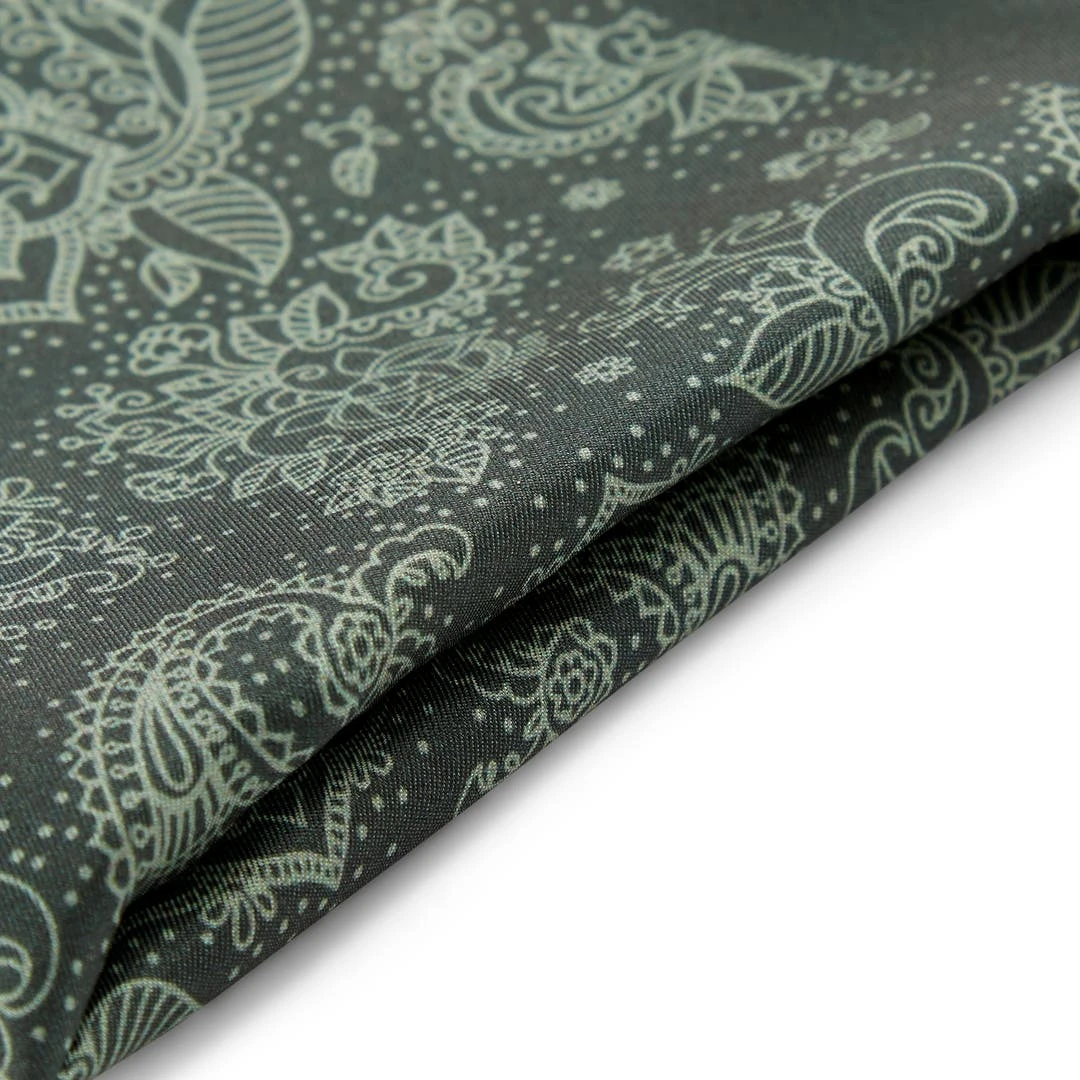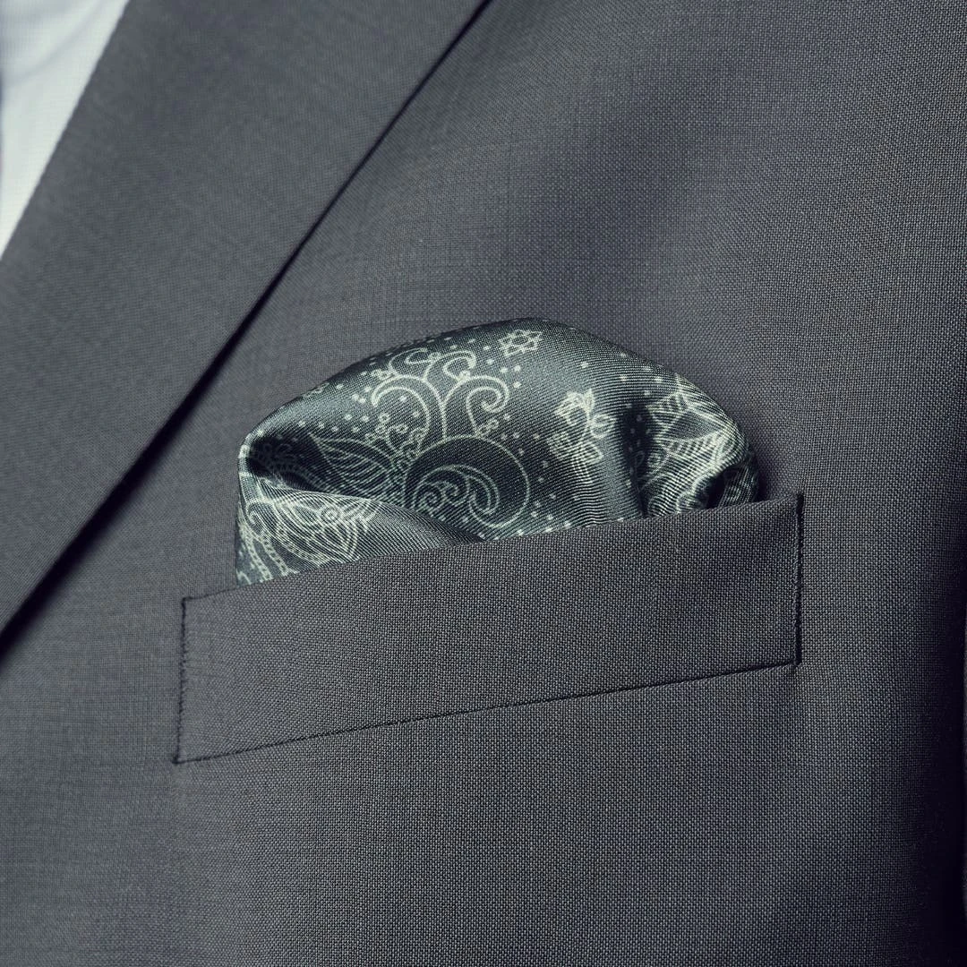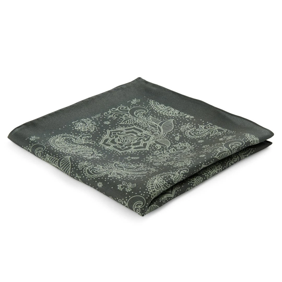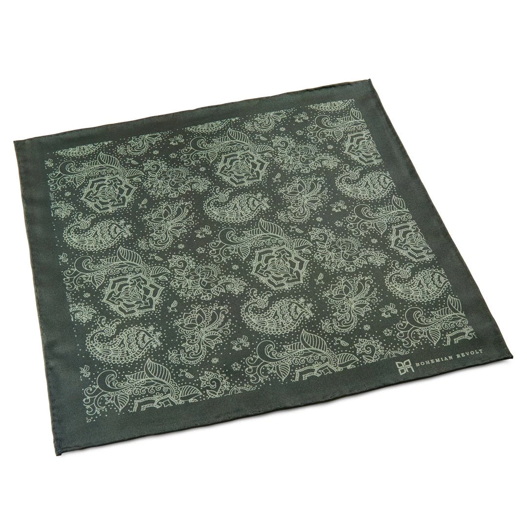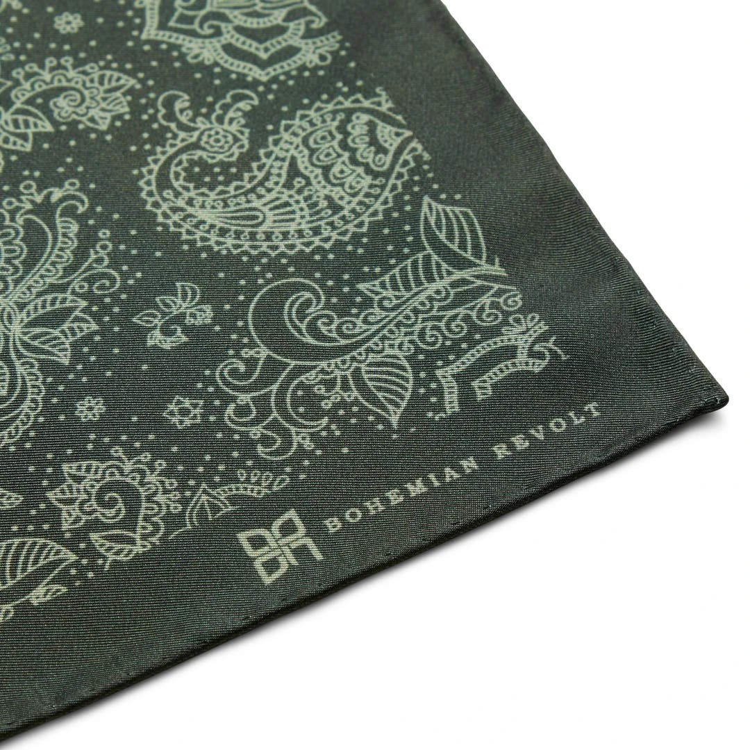 Que vous la portiez seule ou avec des accessoires de couleurs et/ou de motifs similaires, cette pochette de costume en pure soie verte décorée de motifs cachemire fera son effet. Ses bords ont été roulés à la main pour mettre en valeur la qualité de sa fabrication et lui donner un charme extraordinaire.