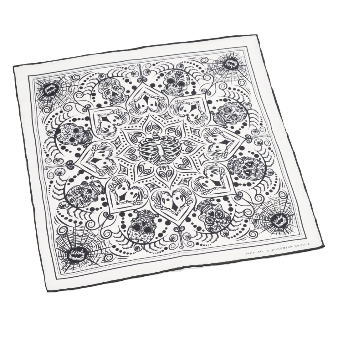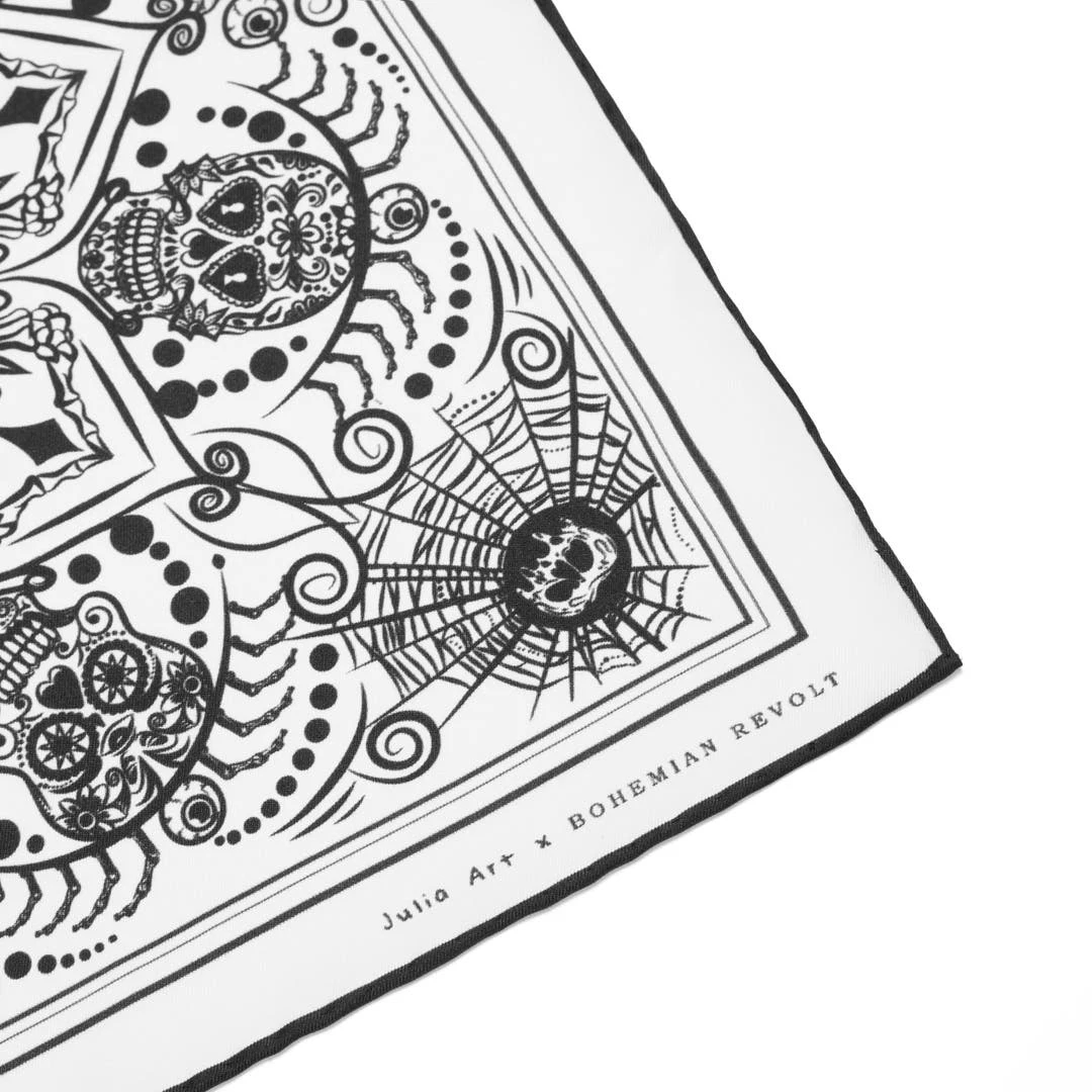 Ce carré de poche inspiré du Jour des Morts est né d’une collaboration entre l’artiste Julia Art et Bohemian Revolt.