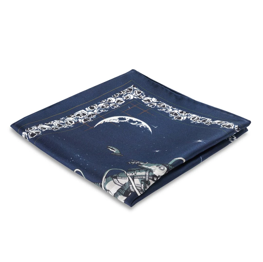 Issu de l’esprit de l’artiste Julia Art, ce carré de poche bleu marine présente des illustrations originales et est confectionné en soie douce. Les rebords roulés à la main donnent un charme artisanal que vous ne trouverez pas dans les pièces produites en série.