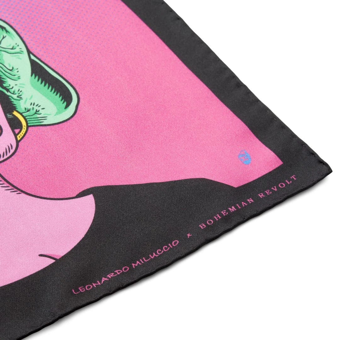 NĂ©e d’une collaboration spĂ©ciale entre Bohemian Revolt et l’artiste Leonardo Miluccio, elle a Ă©tĂ© confectionnĂ©e en soie très douce au toucher, facile Ă plier sans jamais se froisser de manière permanente. RoulĂ©e et cousue Ă la main, elle arbore un bord aux contours irrĂ©guliers absolument charmant. Elle vous sera livrĂ© dans un coffret, idĂ©al pour la ranger ou l’offrir en cadeau.