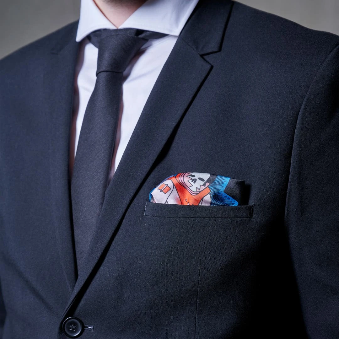 Cette luxueuse pochette de costume est décorée d’un motif futuriste au design résolument unique, une oeuvre originale de l’artiste Jack Teagle. L’accessoire idéal pour ajouter une touche New Age à votre look.
