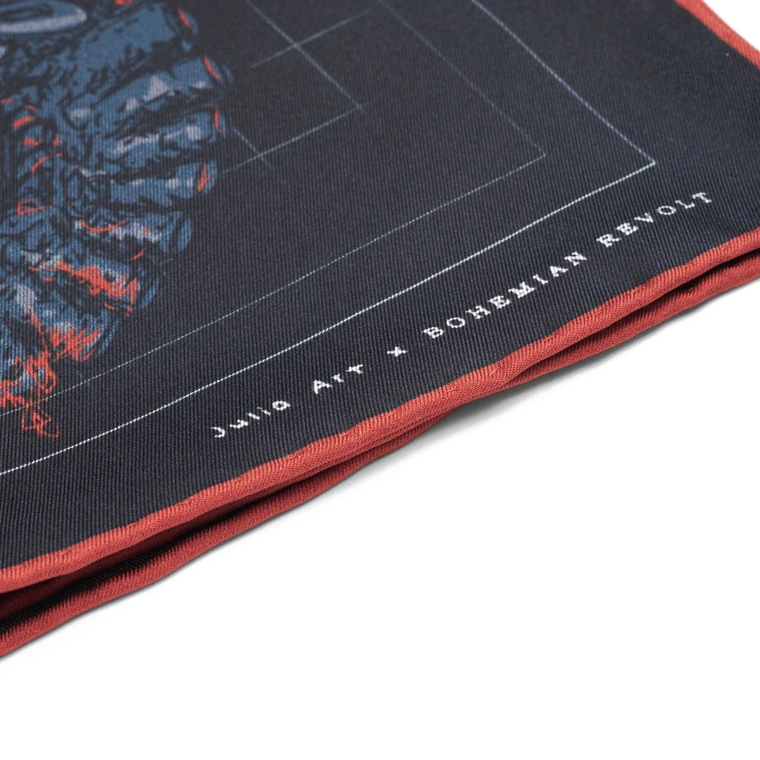 Ce mouchoir de poche en soie pure est né d’une collaboration exclusive entre l’artiste Julia Art et Bohemian Revolt. Fabriqué avec des rebords roulés et finis à la main et d’un design qui suscitera mille conversations.