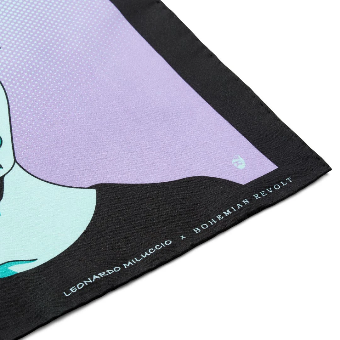 Cette luxueuse pochette de costume est décorée d’une œuvre d’art originale créée par Leonardo Miluccio.