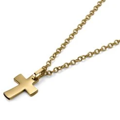 Lucleon Collier à Pendentif Croix Et Bords Incurvés En Acier Inoxydable Doré