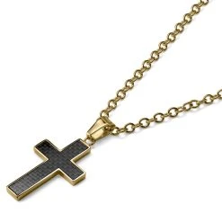 Lucleon Collier à Pendentif Croix Plaqué Or Avec Marqueterie Noire