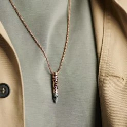 Arkai Collier Rico à Pendentif En Forme De Cartouche Noire Et Pierre Oeil De Tigre