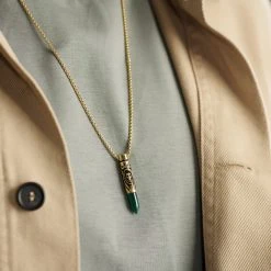 Arkai Collier Rico à Pendentif En Forme De Cartouche Dorée Et Onyx Vert