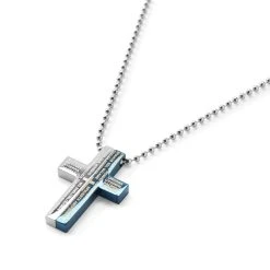 Fort Tempus Collier à Pendentif Croix Chrétienne Le Noir & L’acier