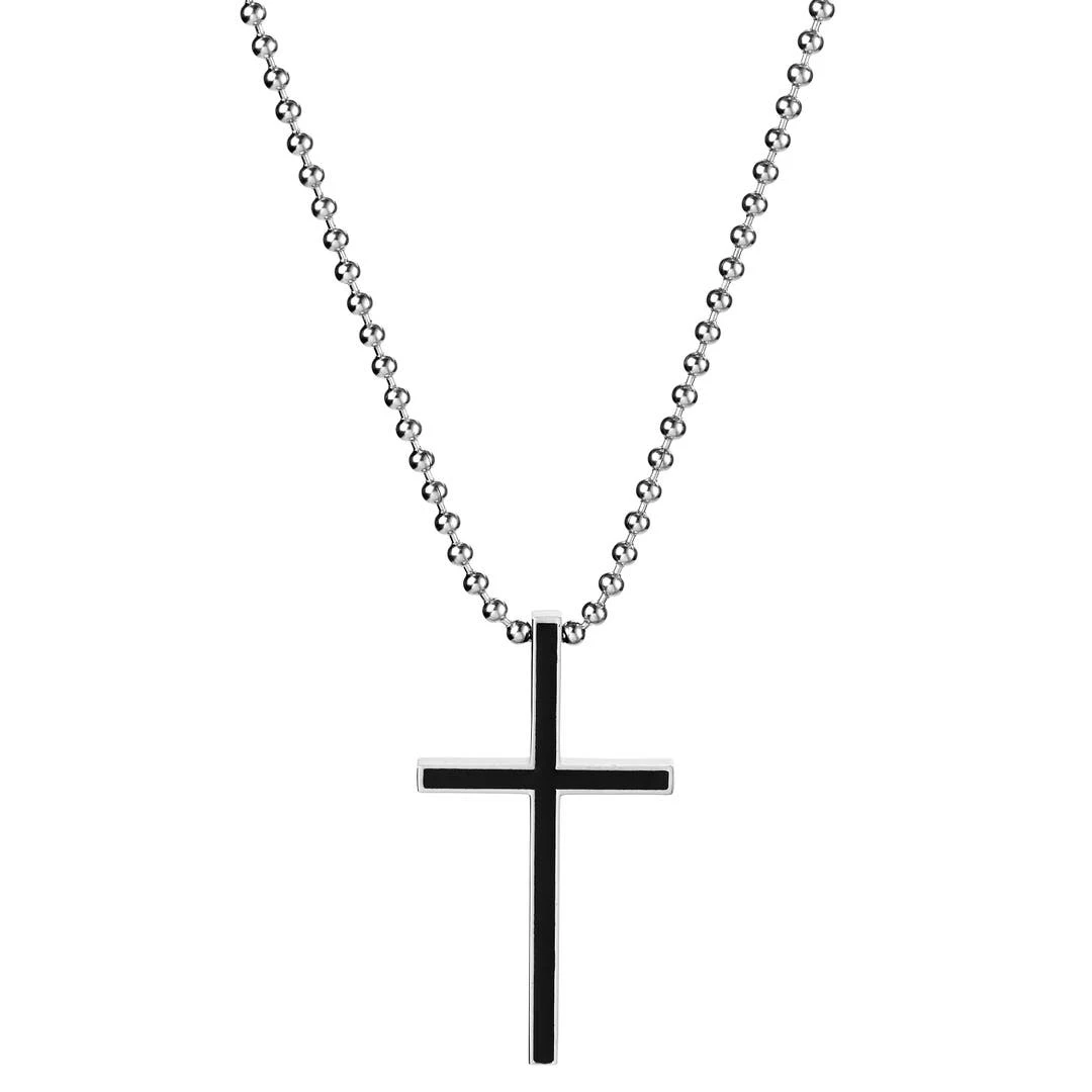 Fort Tempus Collier à Pendentif Croix Chrétienne Le Noir & L’acier