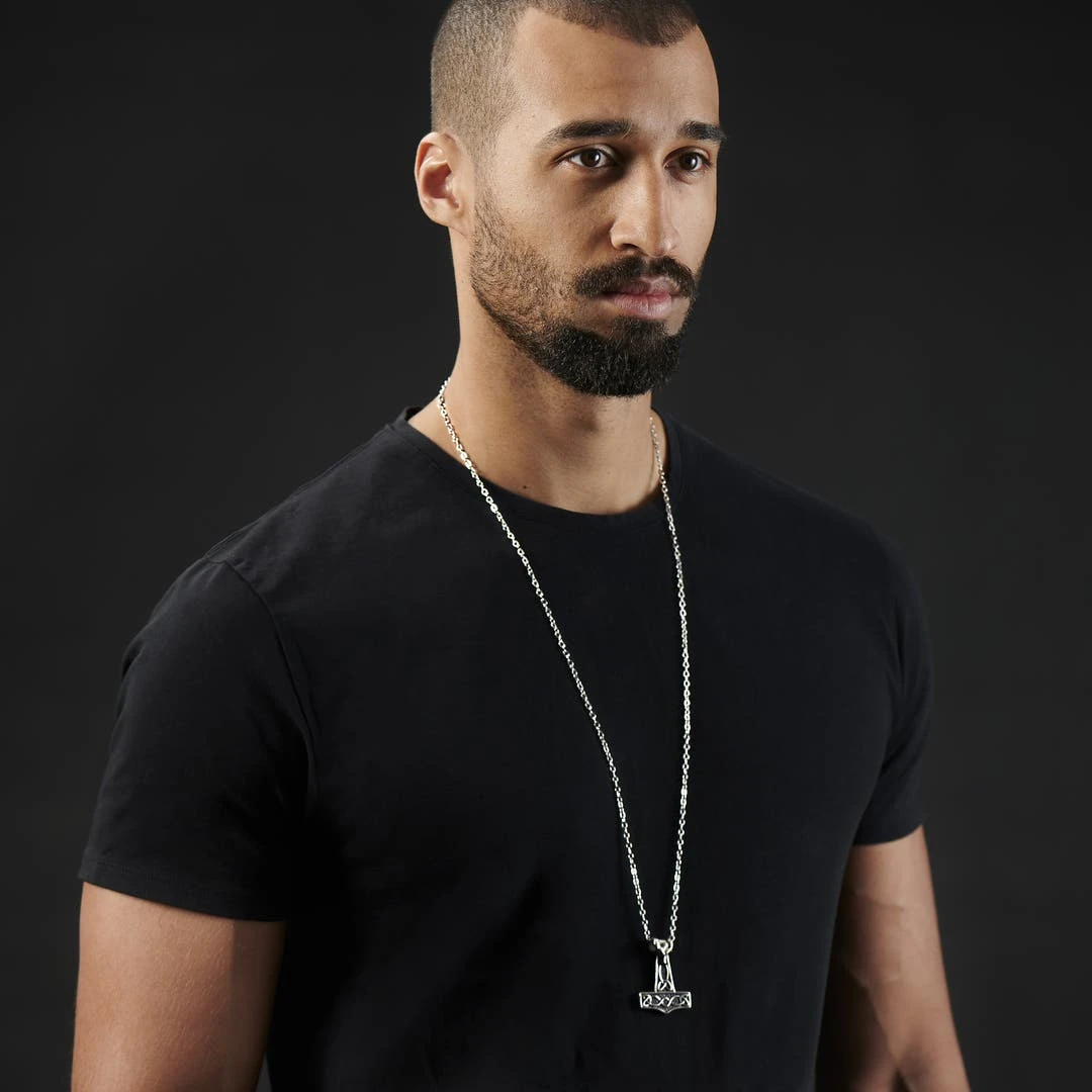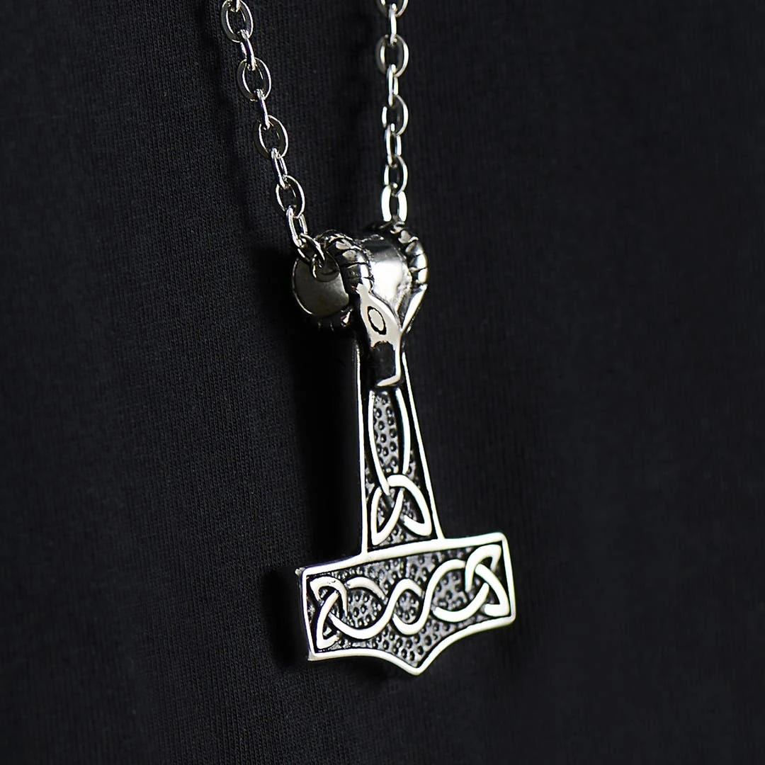 Fort Tempus Collier En Acier Avec Marteau De Thor Argenté