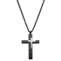 Lucleon Collier à Grand Pendentif Croix En Acier Couleur Argenté Et Bronze Gunmétal