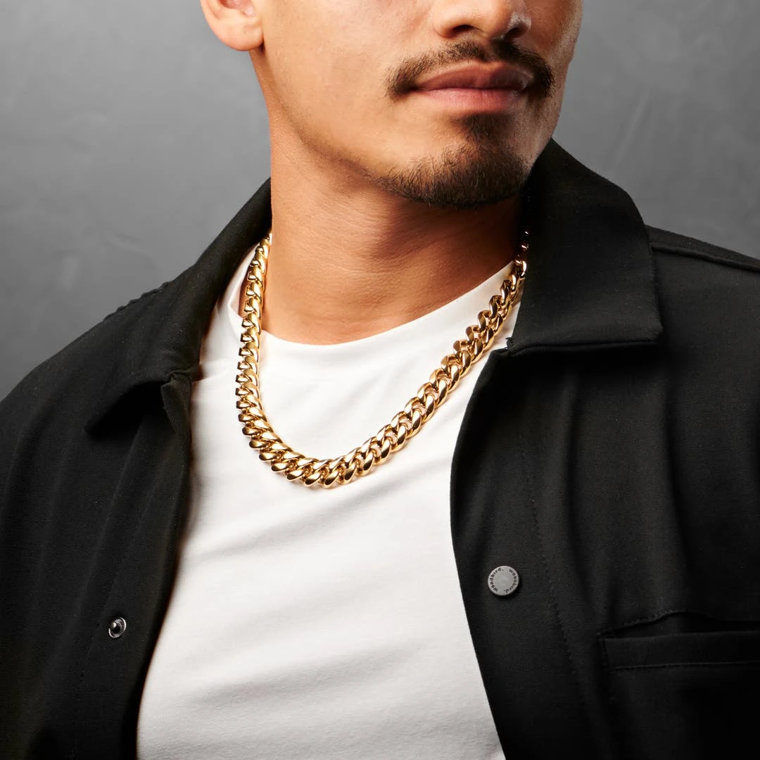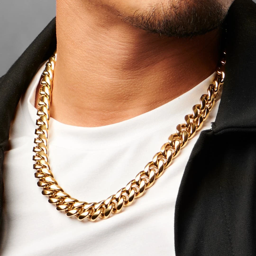 Lucleon Collier à Maillons En Acier Doré 12 Mm