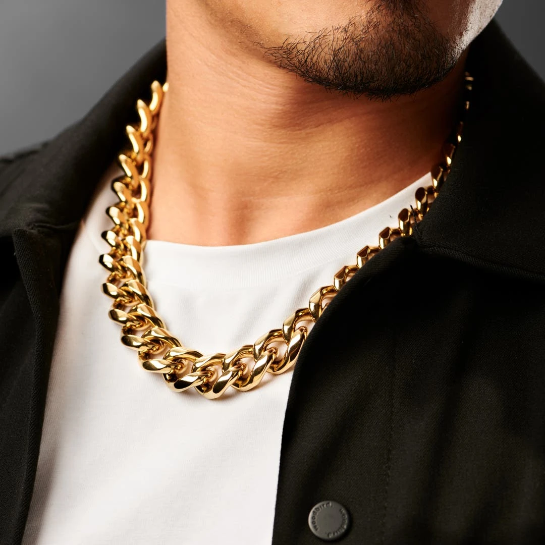 Lucleon Collier à Maillons En Acier Doré 18 Mm