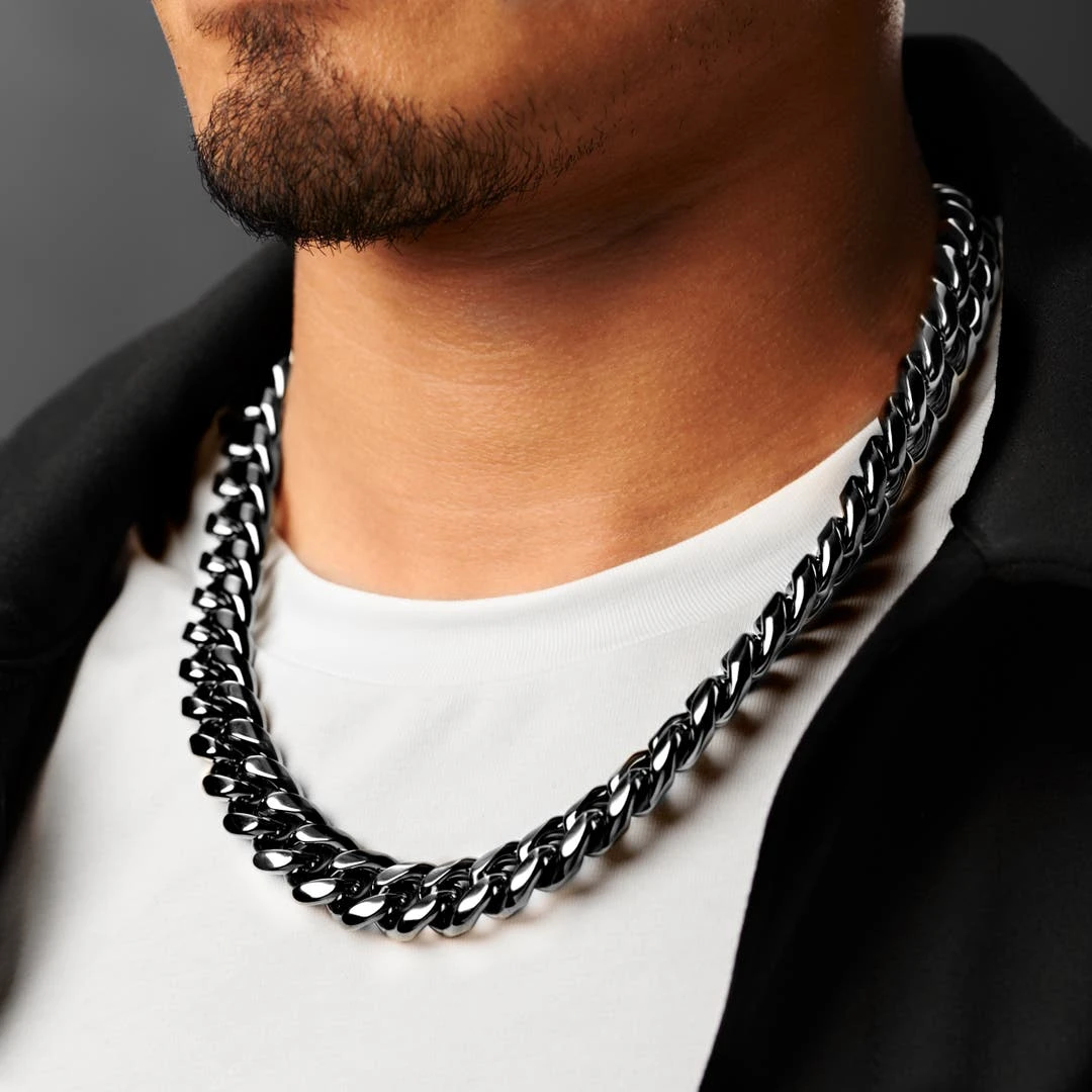 Lucleon Collier à Maillons En Acier Noir 16 Mm