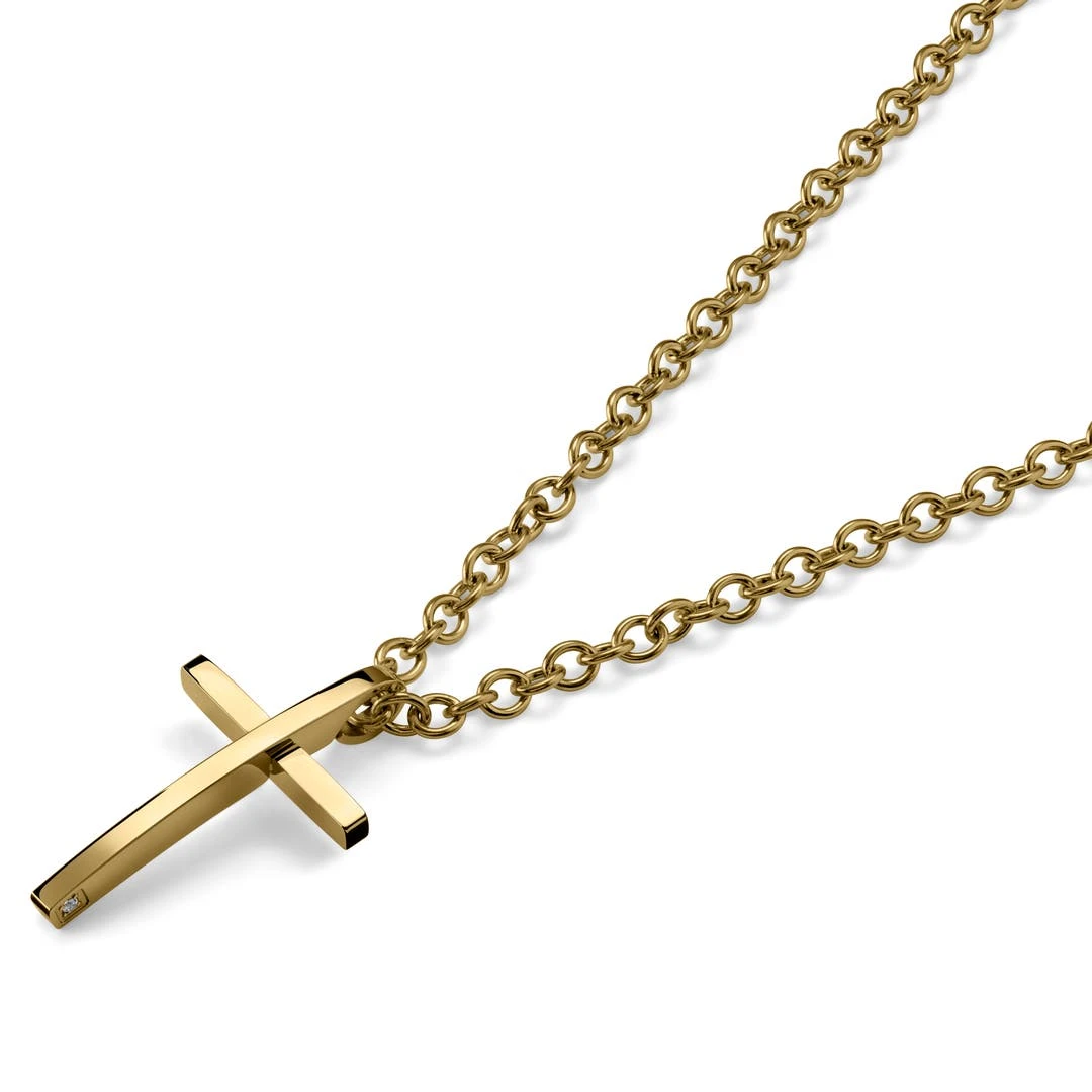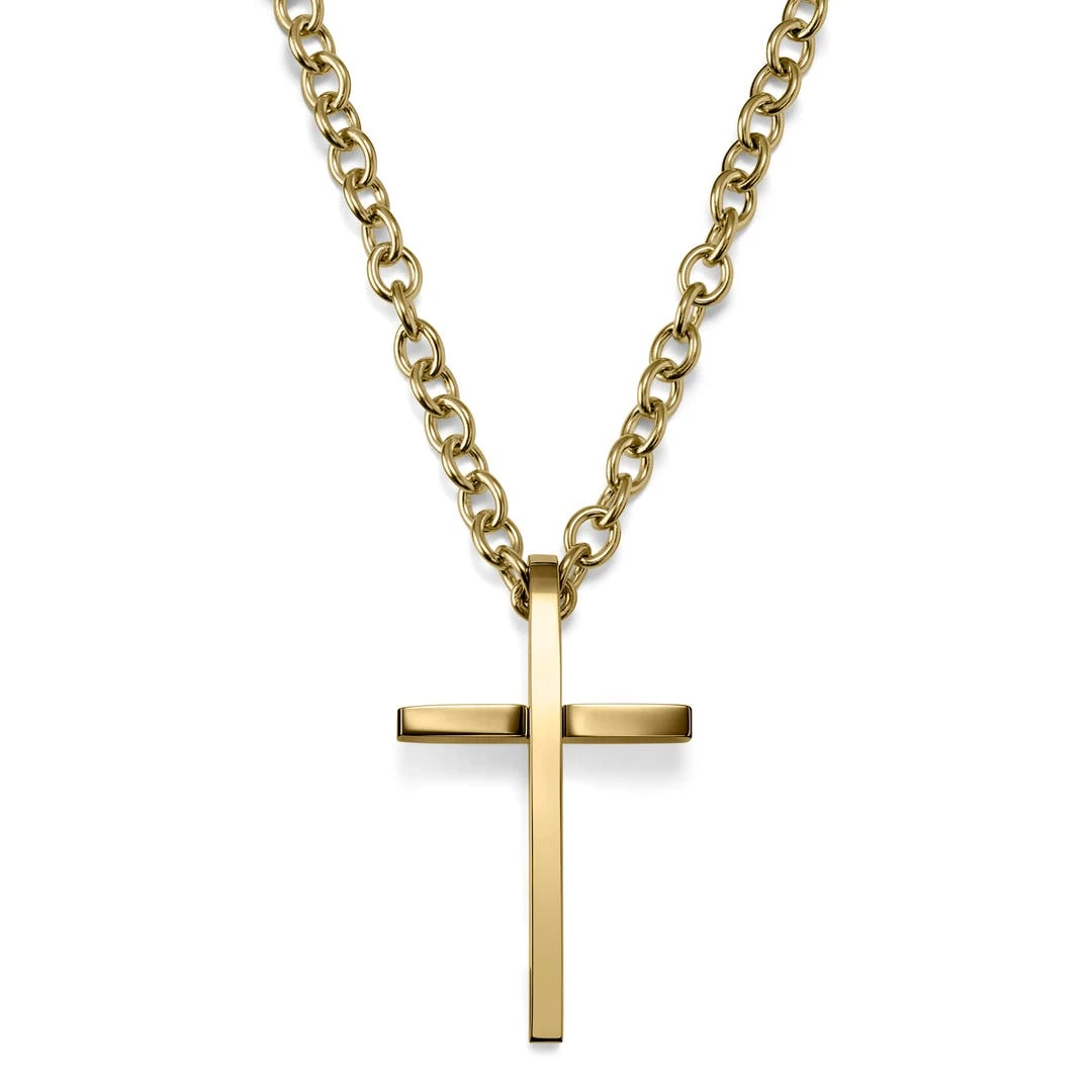 Lucleon Collier à Pendentif Croix Latine En Acier Doré & Poli