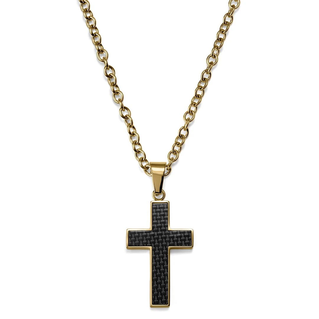 Lucleon Collier à Pendentif Croix Plaqué Or Avec Marqueterie Noire