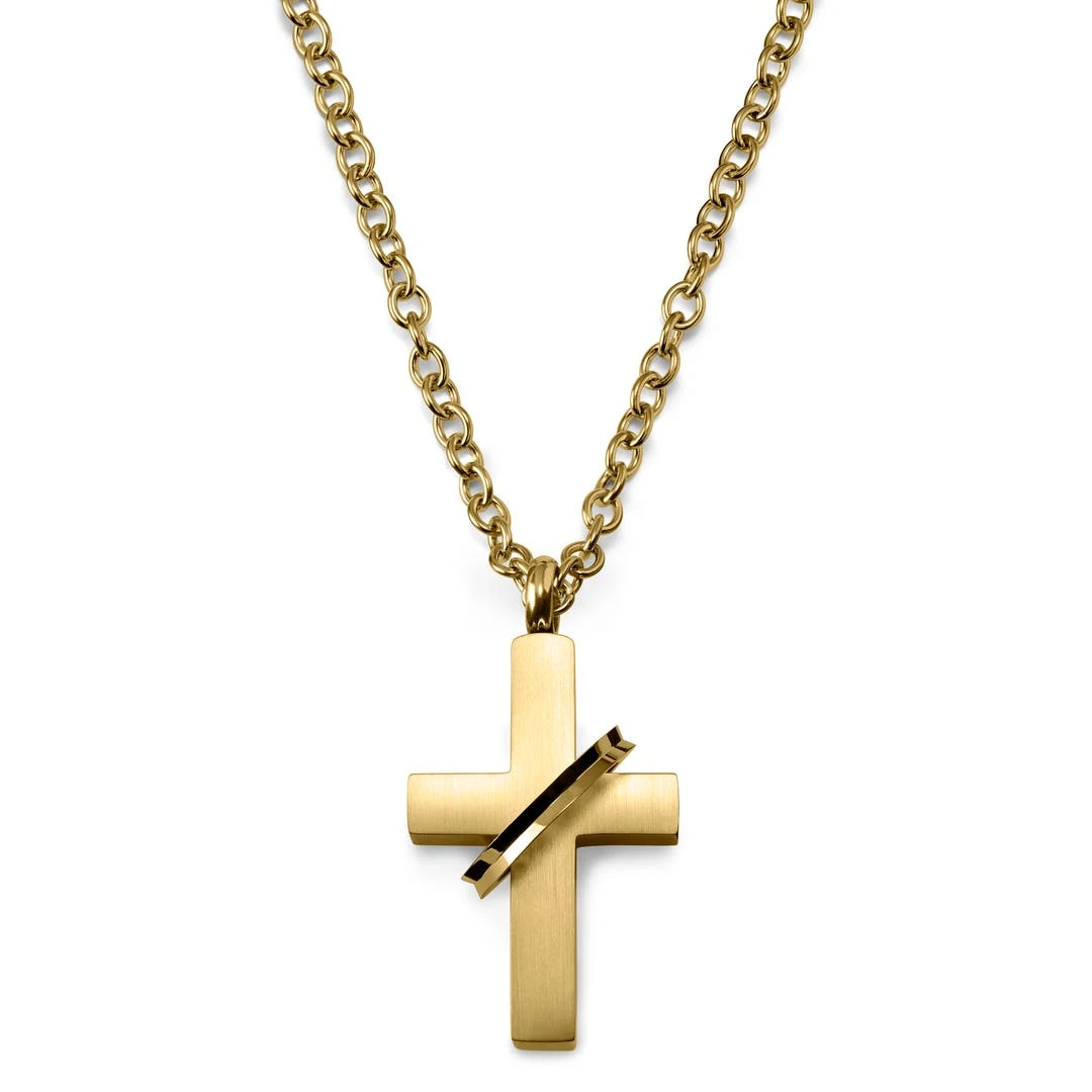 Lucleon Collier à Petit Pendentif Croix Doré Serti D’un Anneau