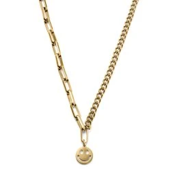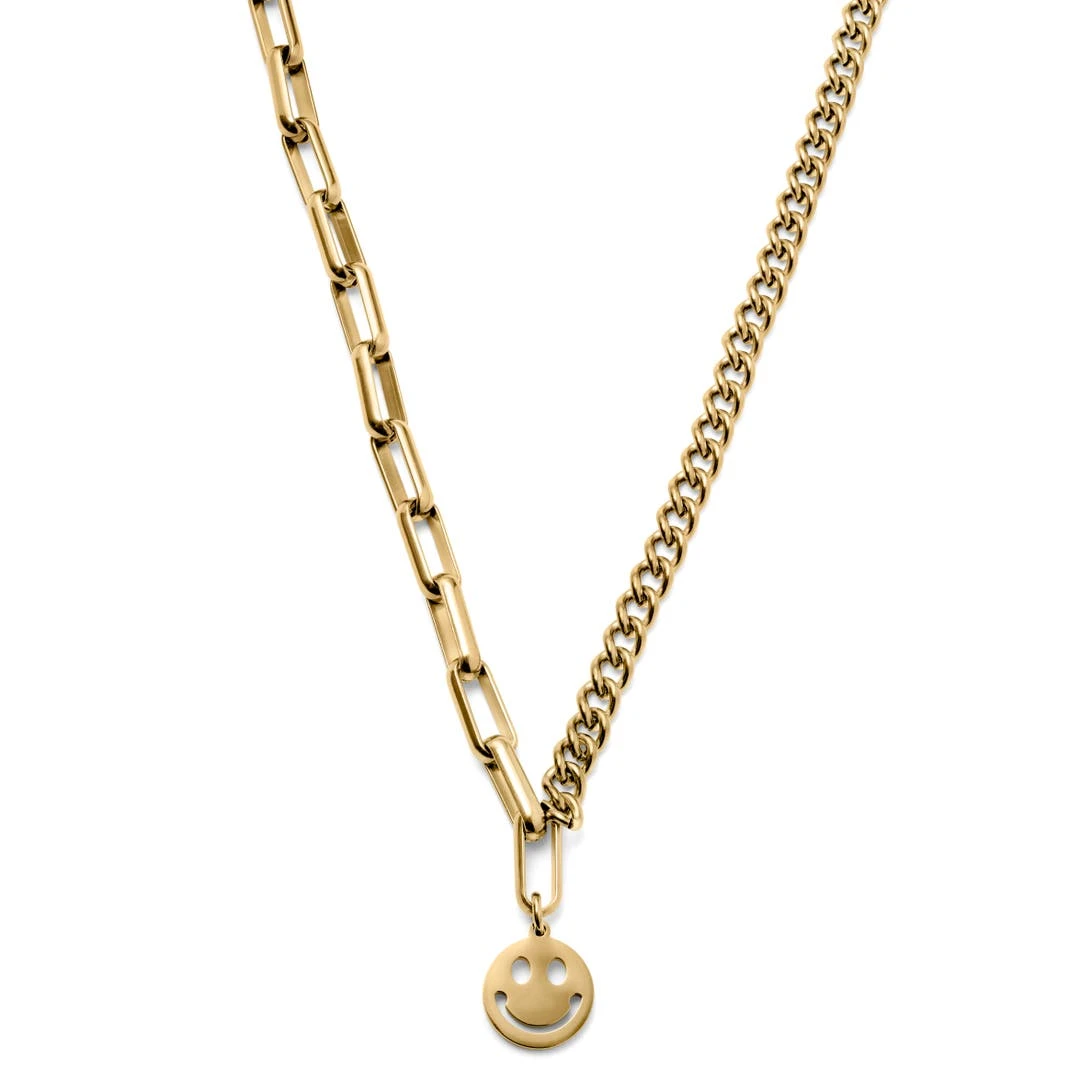 Lucleon Collier Caleb Amager à Double Maille Dorée Et Pendentif Smiley