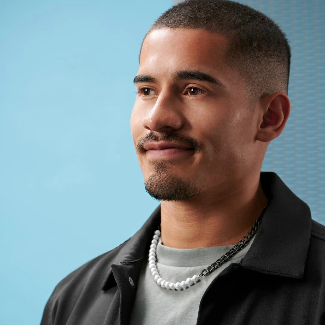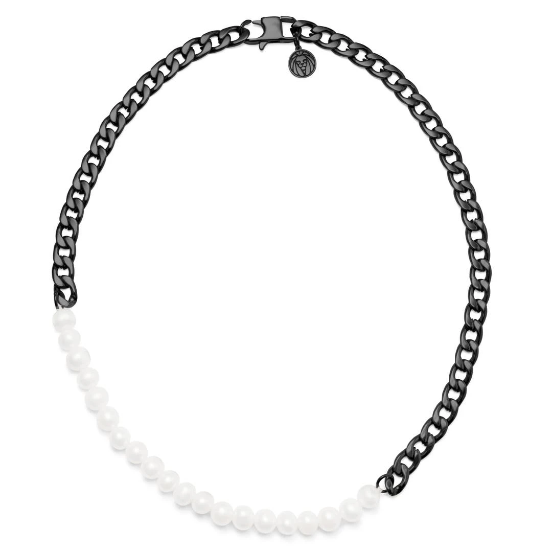 Lucleon Collier De Perles Et Chaîne à Maille Gourmette Couleur Bronze Gunmetal Charlie Amager