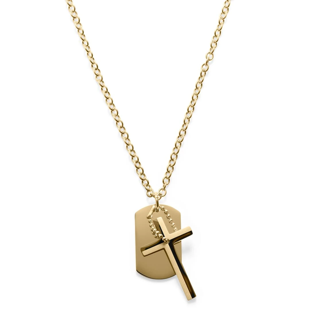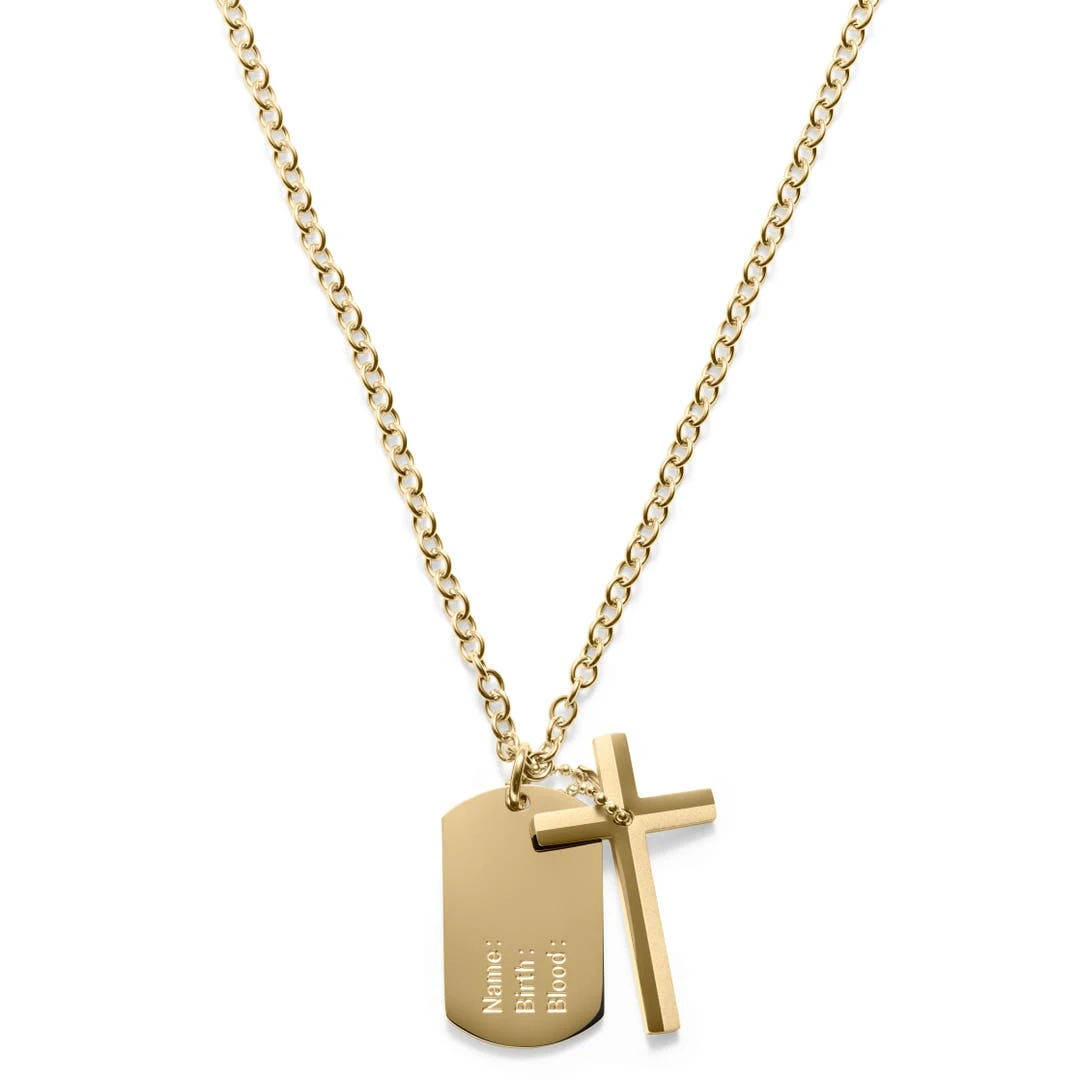 Lucleon Collier En Acier Doré à Pendentif Croix Et Plaque Militaire