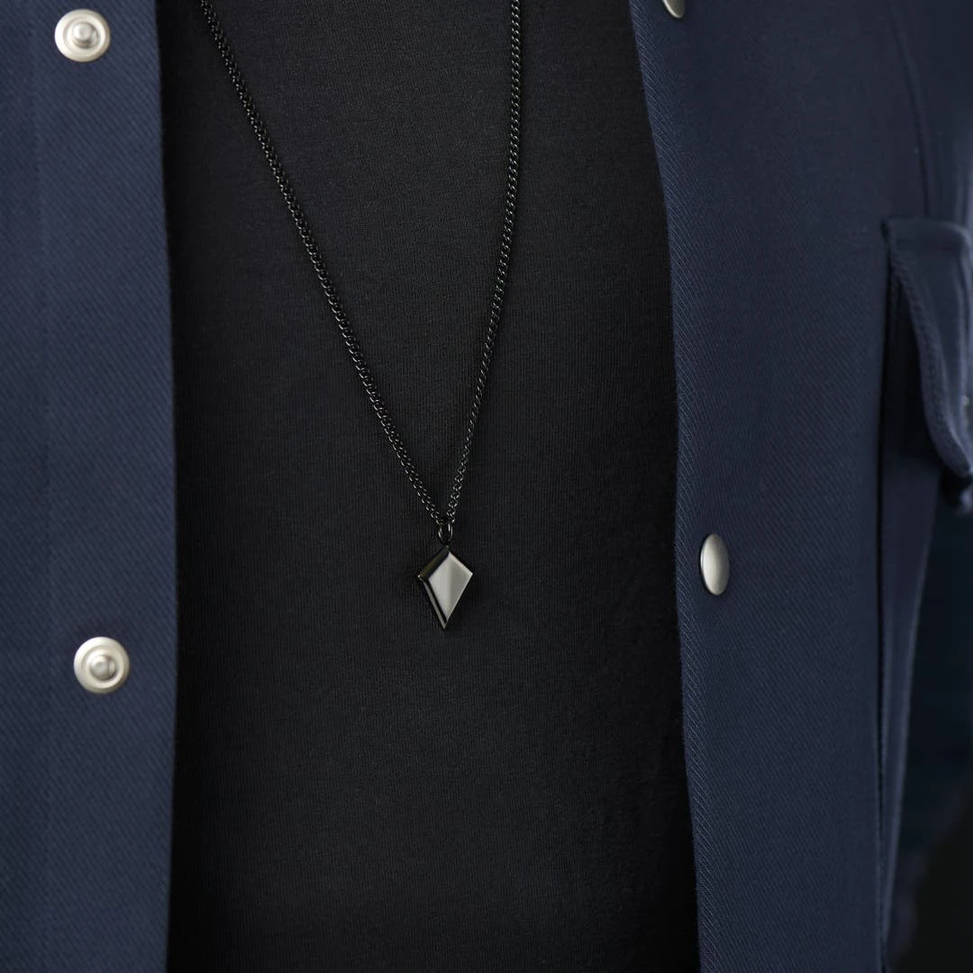 Lucleon Collier En Acier Noir à Pendentif En Forme De Diamant