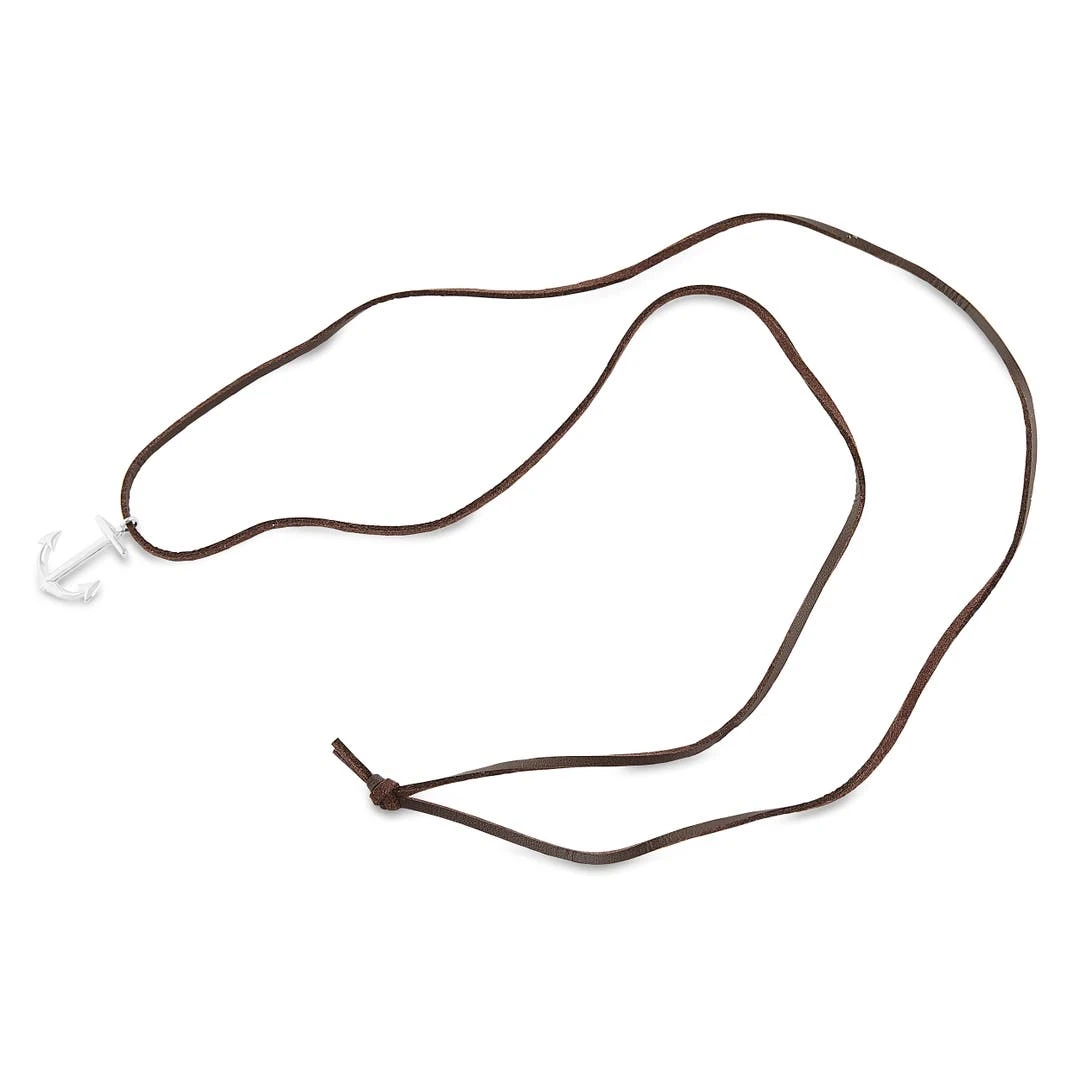 Lucleon Collier En Cuir Marron à Pendentif Argenté En Forme D’ancre Marine