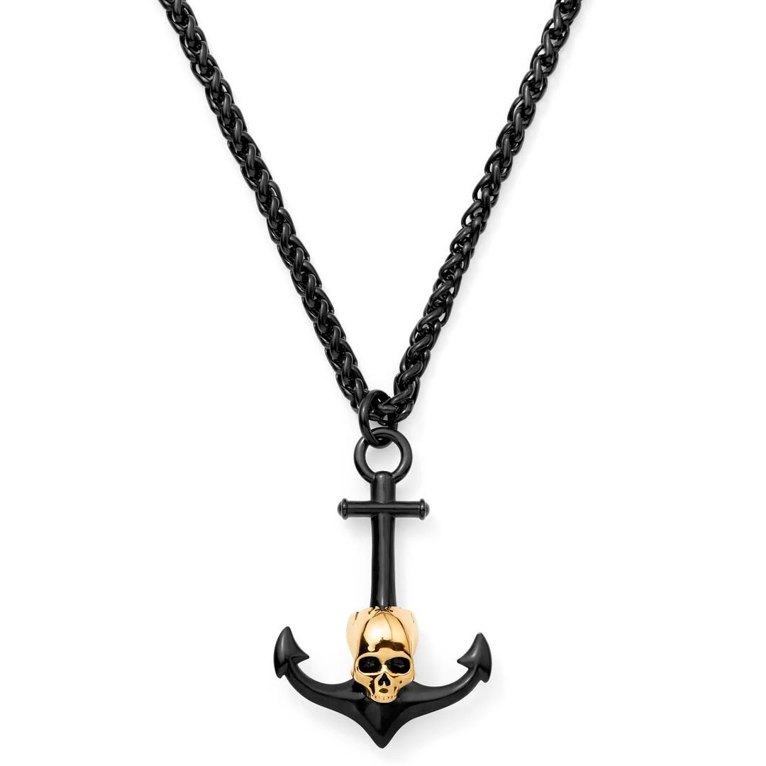 Lucleon Collier Tadd Noir Avec Ancre Et Tête De Mort