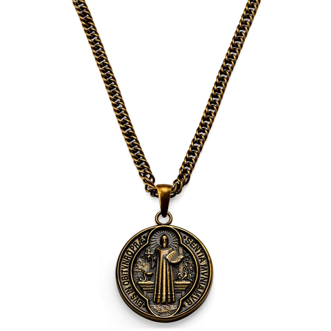 Lucleon Sanctus | Collier Doré Vintage Avec Médaille De Saint-Benoît