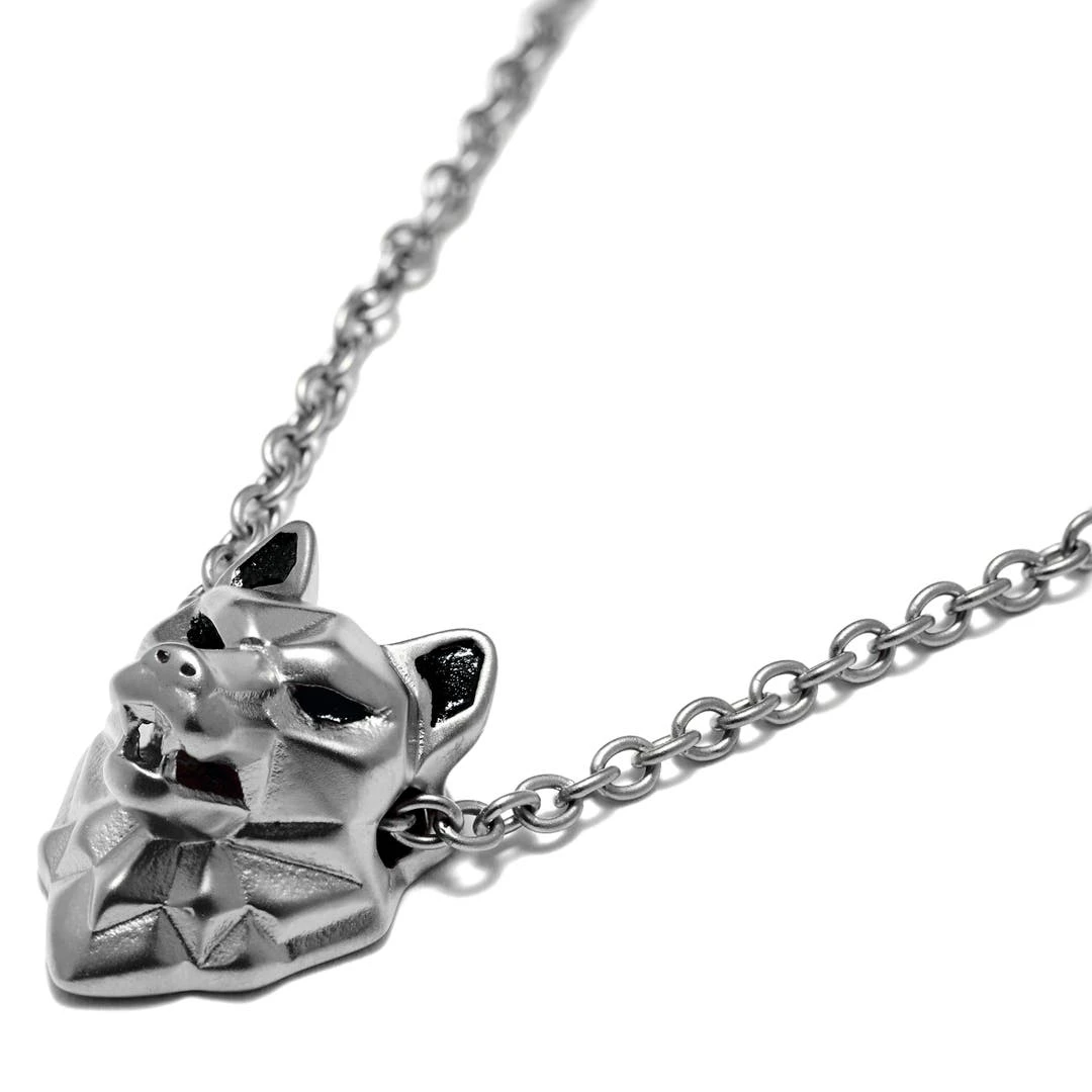 Moody Mason Collier Jax En Acier à Pendentif Tête De Loup