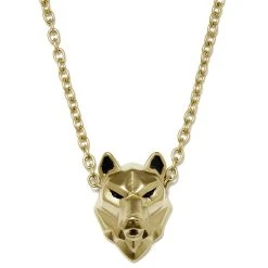 Moody Mason Collier Jax En Acier Doré à Pendentif Tête De Loup