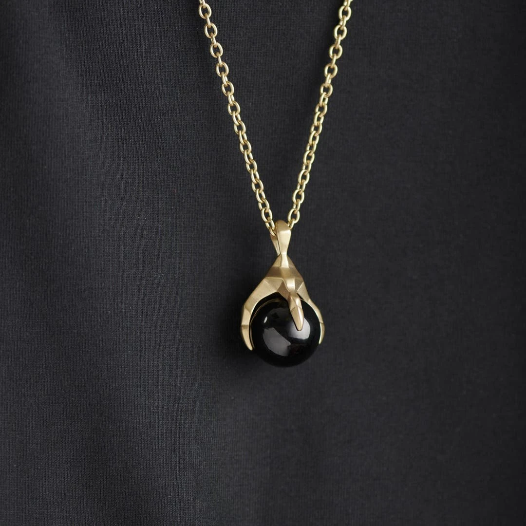 Moody Mason Collier Jax En Acier Doré Avec Serre De Dragon Et Agate Noire