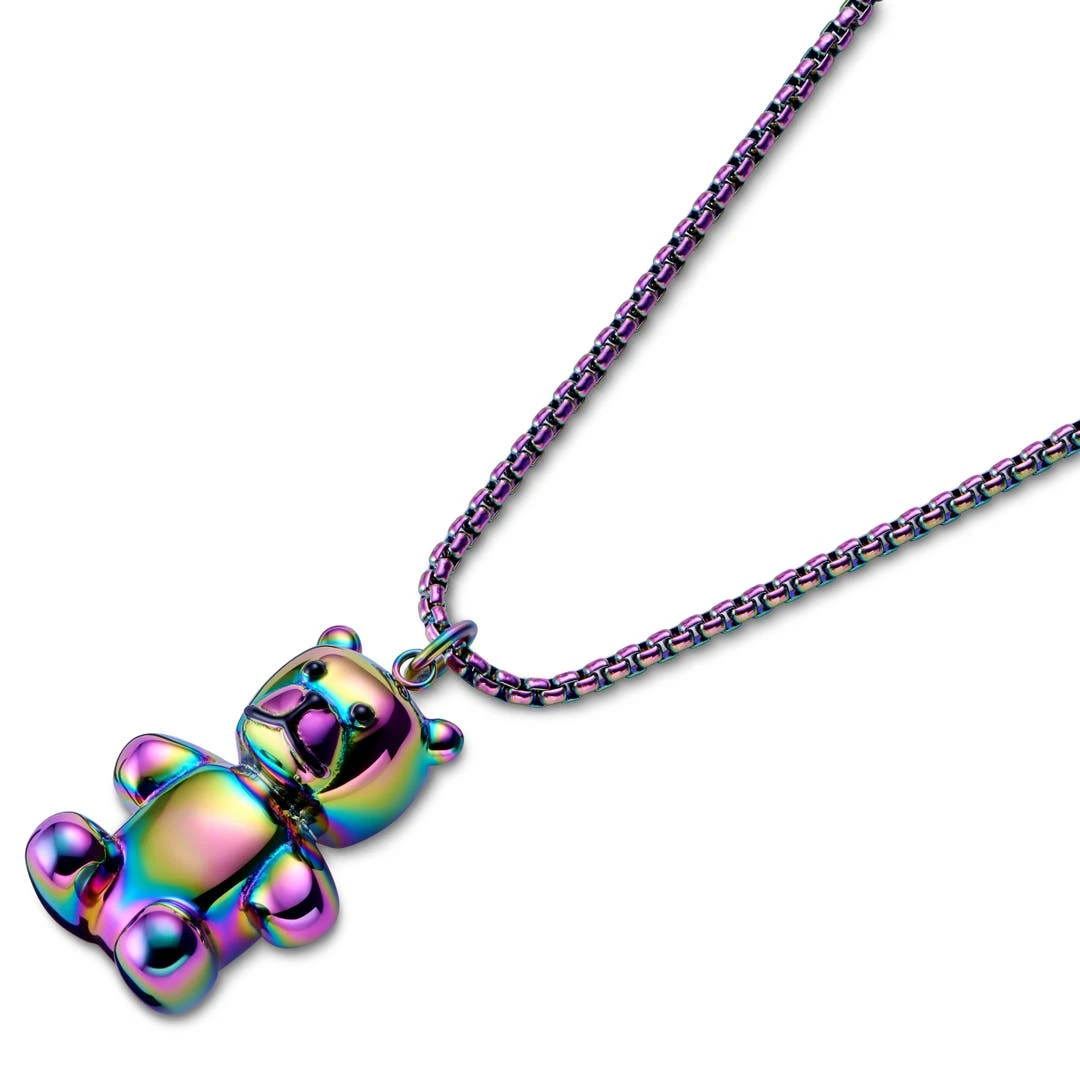 Otsu Egan | Collier à Maille Vénitienne Avec Pendentif Ours En Peluche En Acier Inoxydable Arc-en-ciel