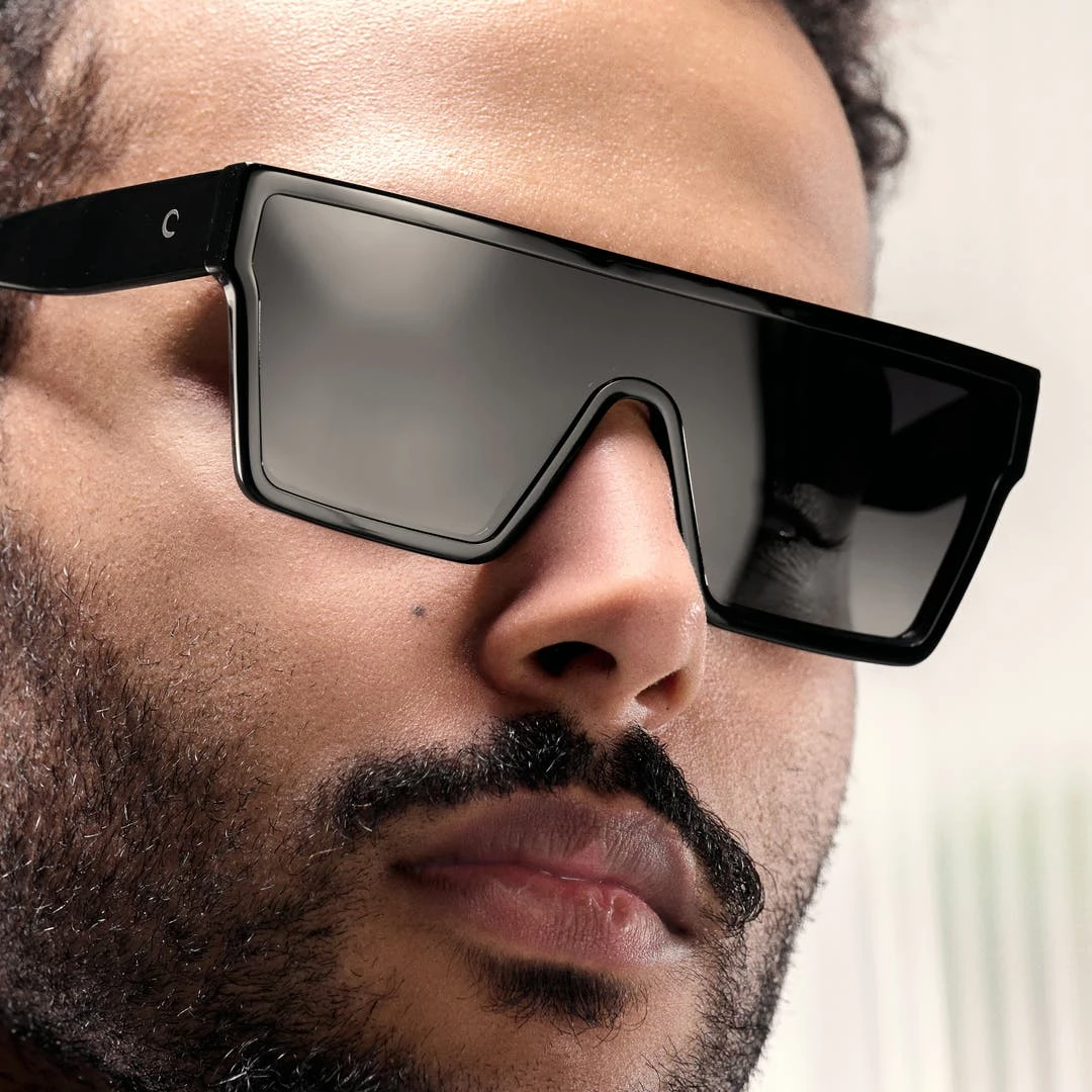 Des lunettes de soleil pour homme au charme délicieusement rétro. Leurs montures carrées, fabriquées en acétate durable et léger, présentent un audacieux design monobloc.