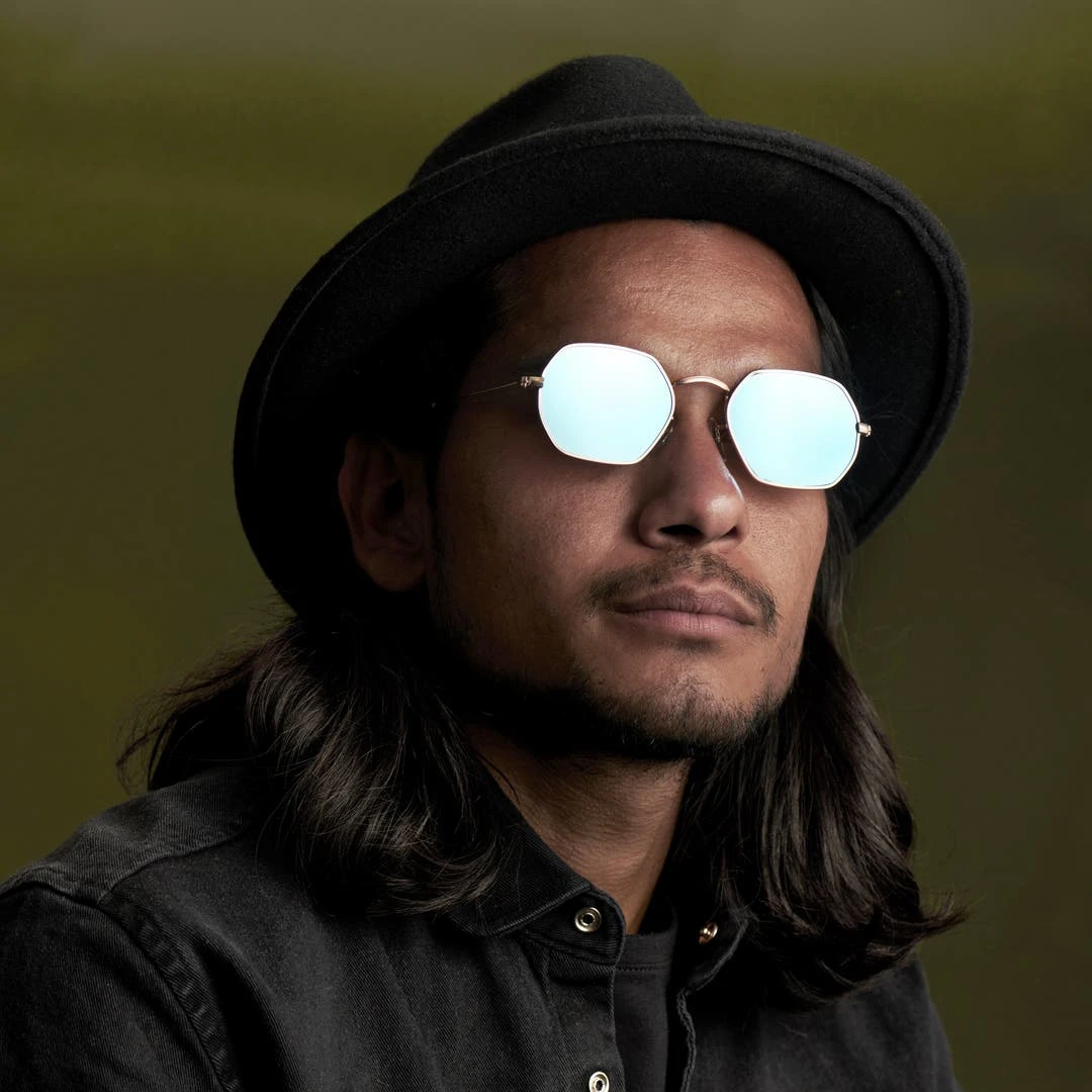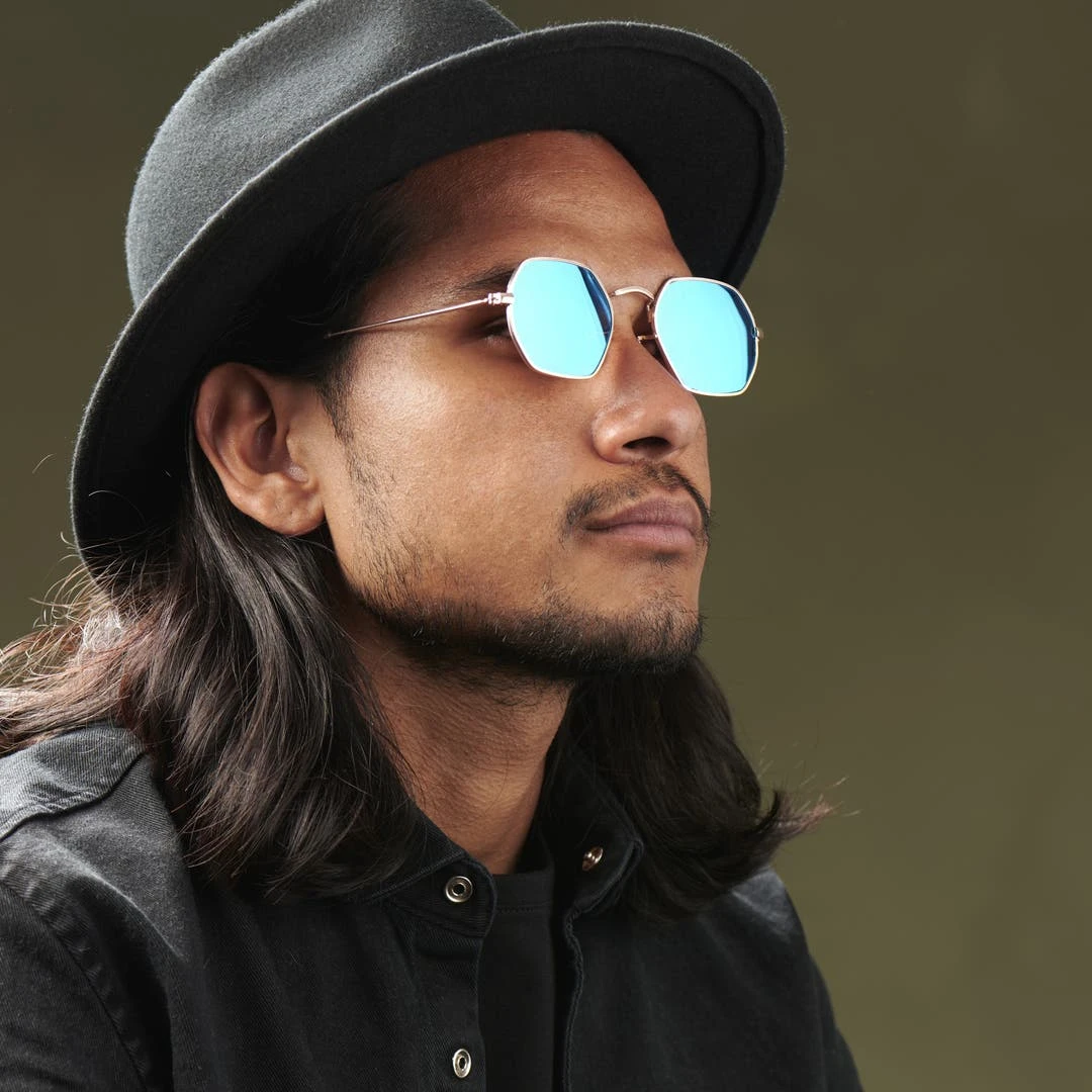 Peaufinez votre look groovy avec ces lunettes de soleil rétro au look extraordinaire arborant des montures anguleuses en métal doré et des verres bleus qui vous offriront une protection UVA / UVB complète.