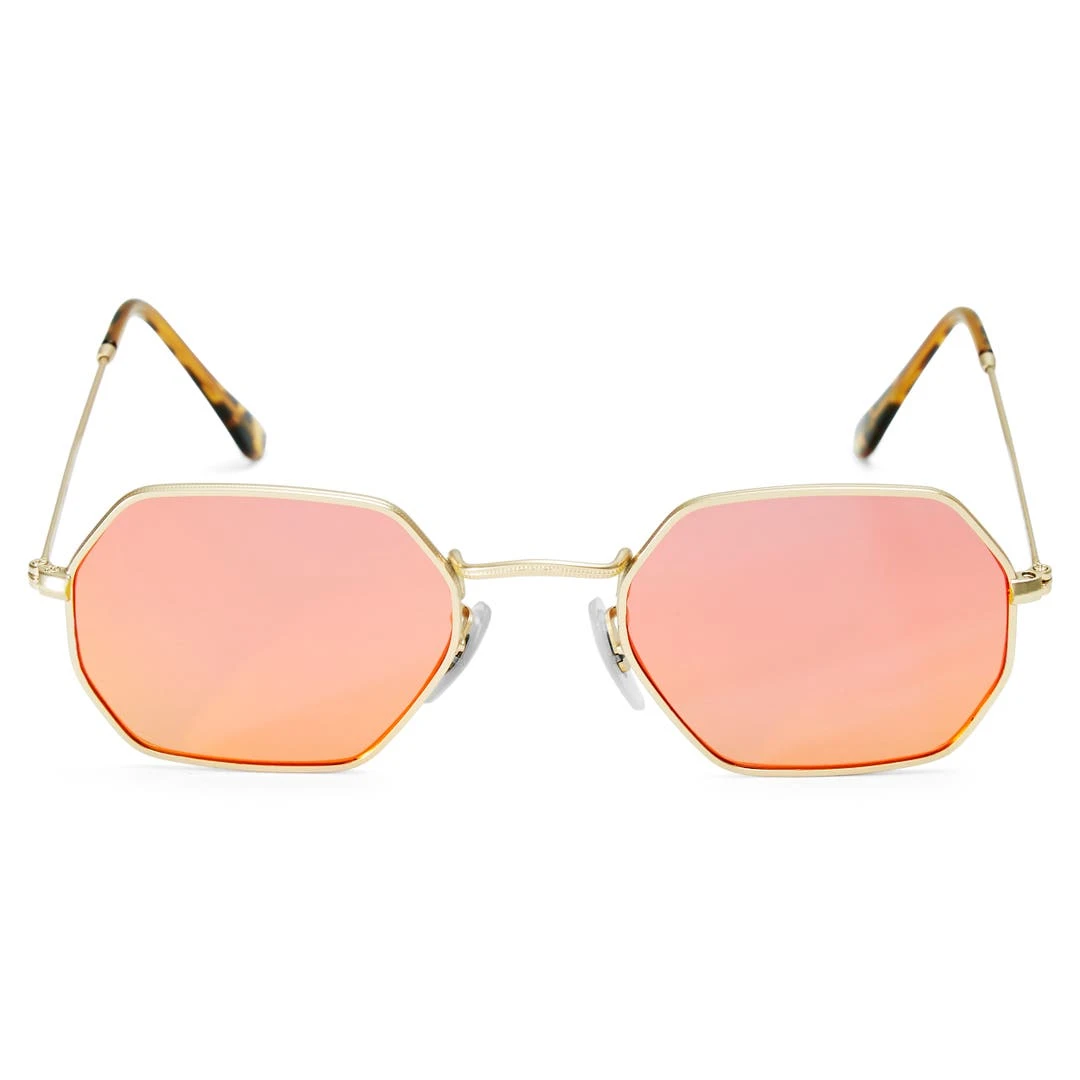 Get into the groove grâce à ces lunettes au look hors du commun. Leurs montures en métal doré et leurs verres orange ne manqueront pas d’attirer les regards. Elles vous offriront une protection UVA / UVB complète