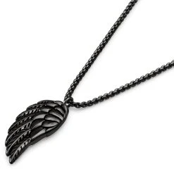 Otsu Egan | ChaĂ®ne Ă Maille VĂ©nitienne Avec Pendentif En Forme D’aile En Acier Inoxydable Gris Anthracite