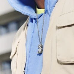 Otsu Egan | Chaîne à Maille Vénitienne Avec Pendentif Ours En Peluche En Acier Inoxydable Argenté