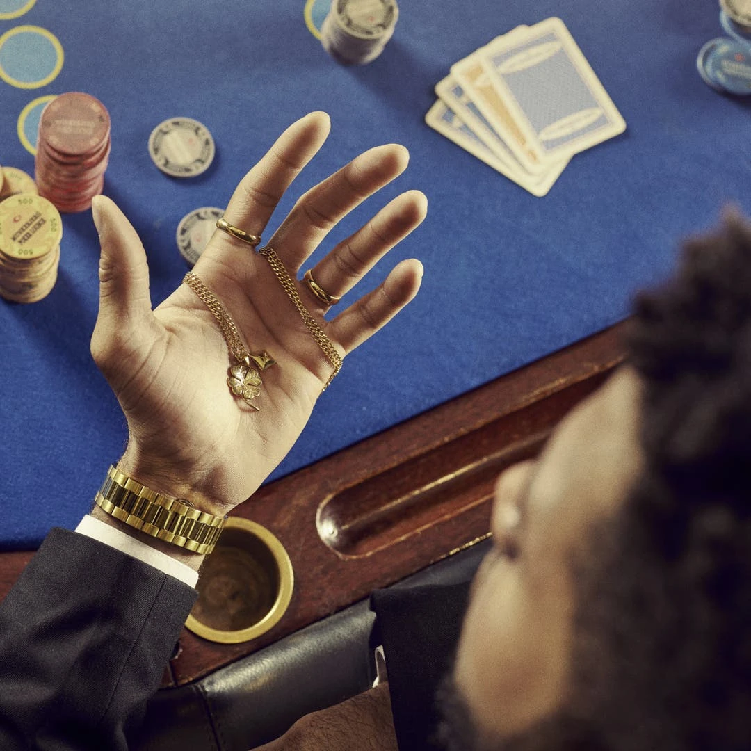 Seizmont Ace | Collier à Double Pendentif Doré “L’as De Carreau” Et “Le Trèfle à 4 Feuilles”