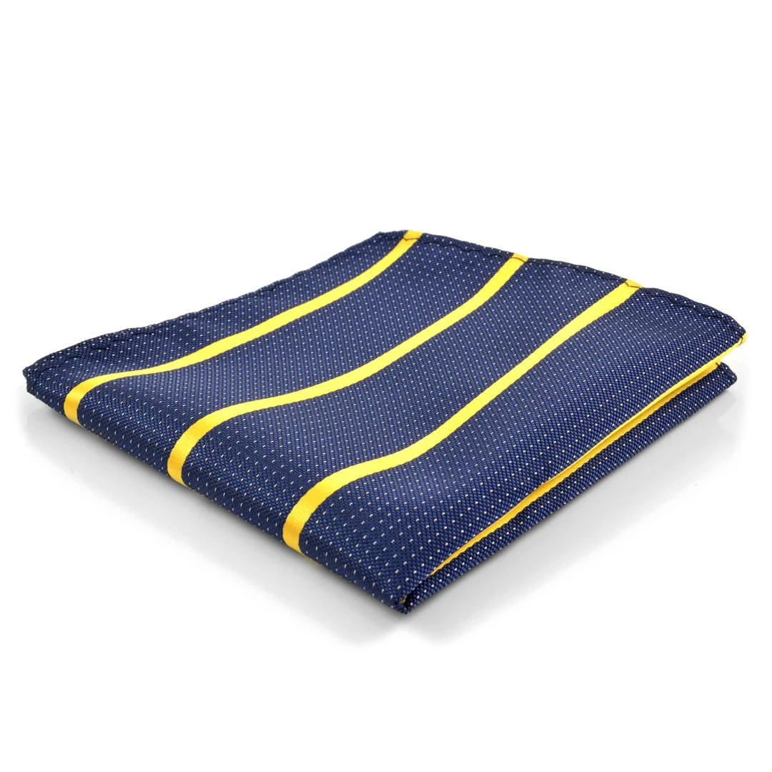 Pochette bleu rayée de subtiles et fines lignes jaunes Le bleu de la pochette est réveillé par de petits points blancs car vous n’êtes pas sans savoir que chaque détail compte !