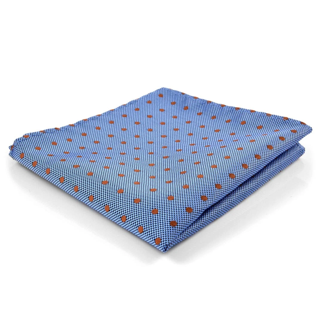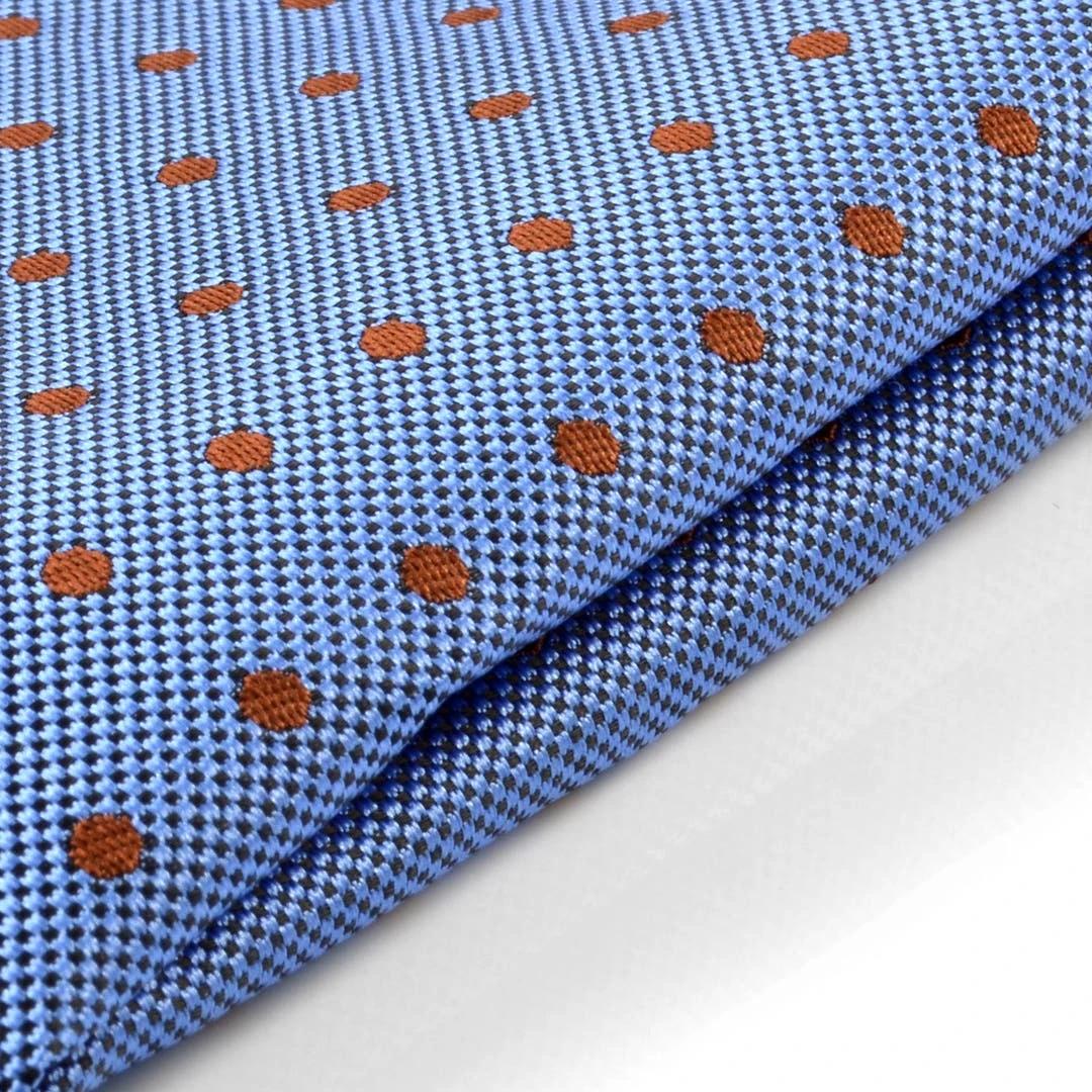 Une pochette de costume de couleur bleu ciel avec des petits pois bruns pour briser le design.
