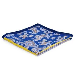 Des contrastes de bleu et de jaune utilisés en parfaite harmonie procurent à cette pochette une variété de splendides motifs à utiliser de différentes manières, au gré de vos envies. Facile à plier, son tissu en soie fine ne prendra que peu de place dans la poche de votre veste. Ses bords sont repliés et cousus afin de les renforcer et de leur offrir une durabilité accrue.