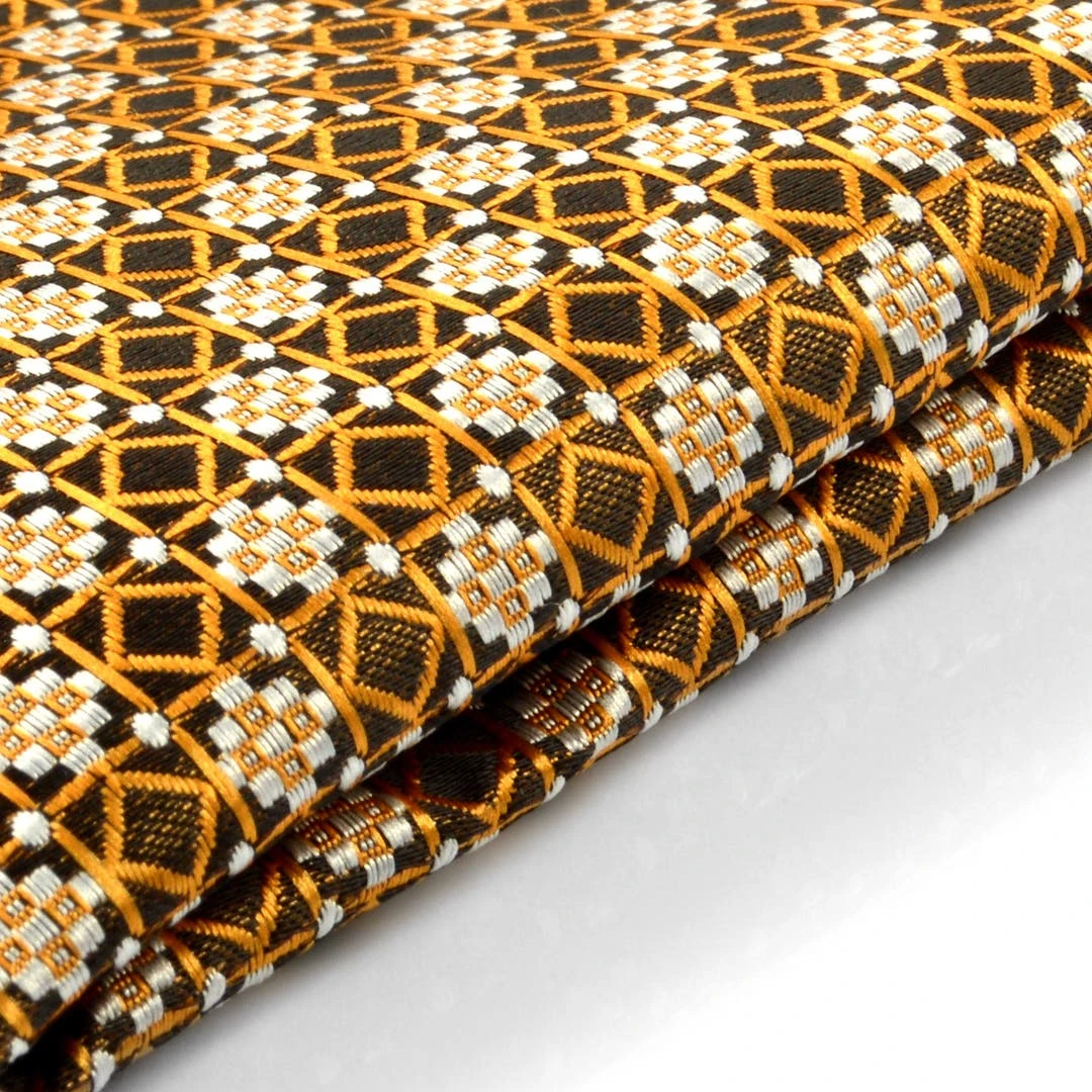 Une pochette de costume avec une vraie ambiance rétro, conçue dans des couleurs marron et beige avec des détails blancs discrets.