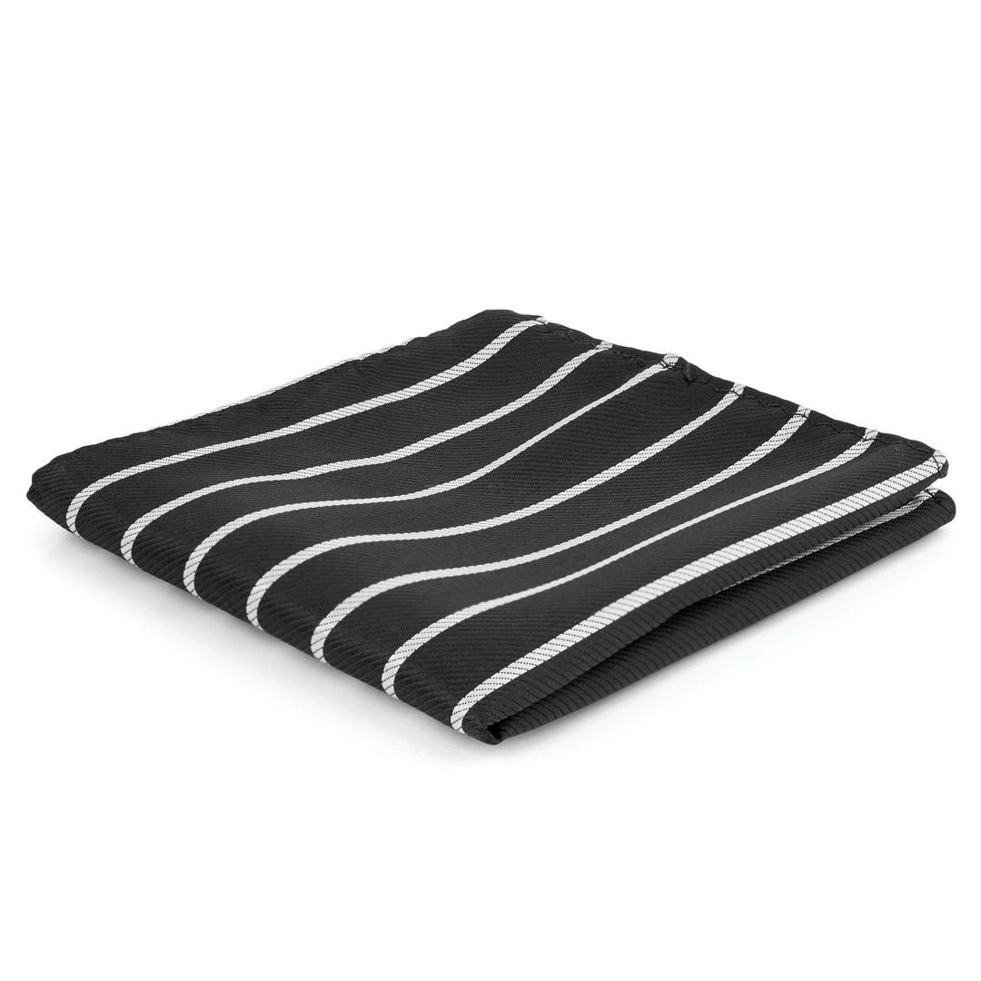 Voilà les deux termes qui définissent le mieux cette magnifique pochette de costumes à rayures noires et blanches. Un véritable petit chef-d’œuvre monochrome, confectionné en tissu de polyester, aux bords cousus et renforcés.