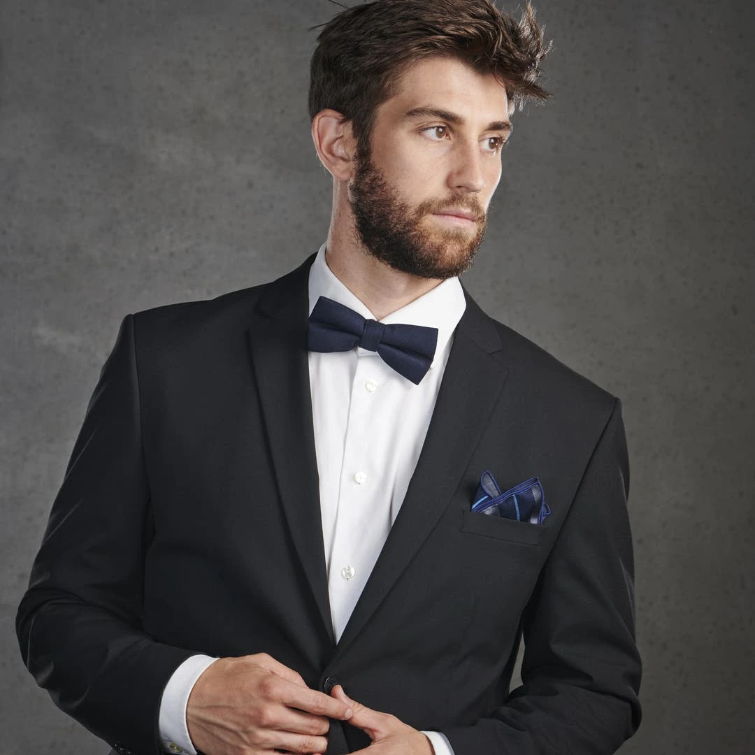 Confectionnée en soie douce et légère, sertie de bords renforcés de couleur bleu marine, son tissu mince et léger ne déformera pas votre poche.
